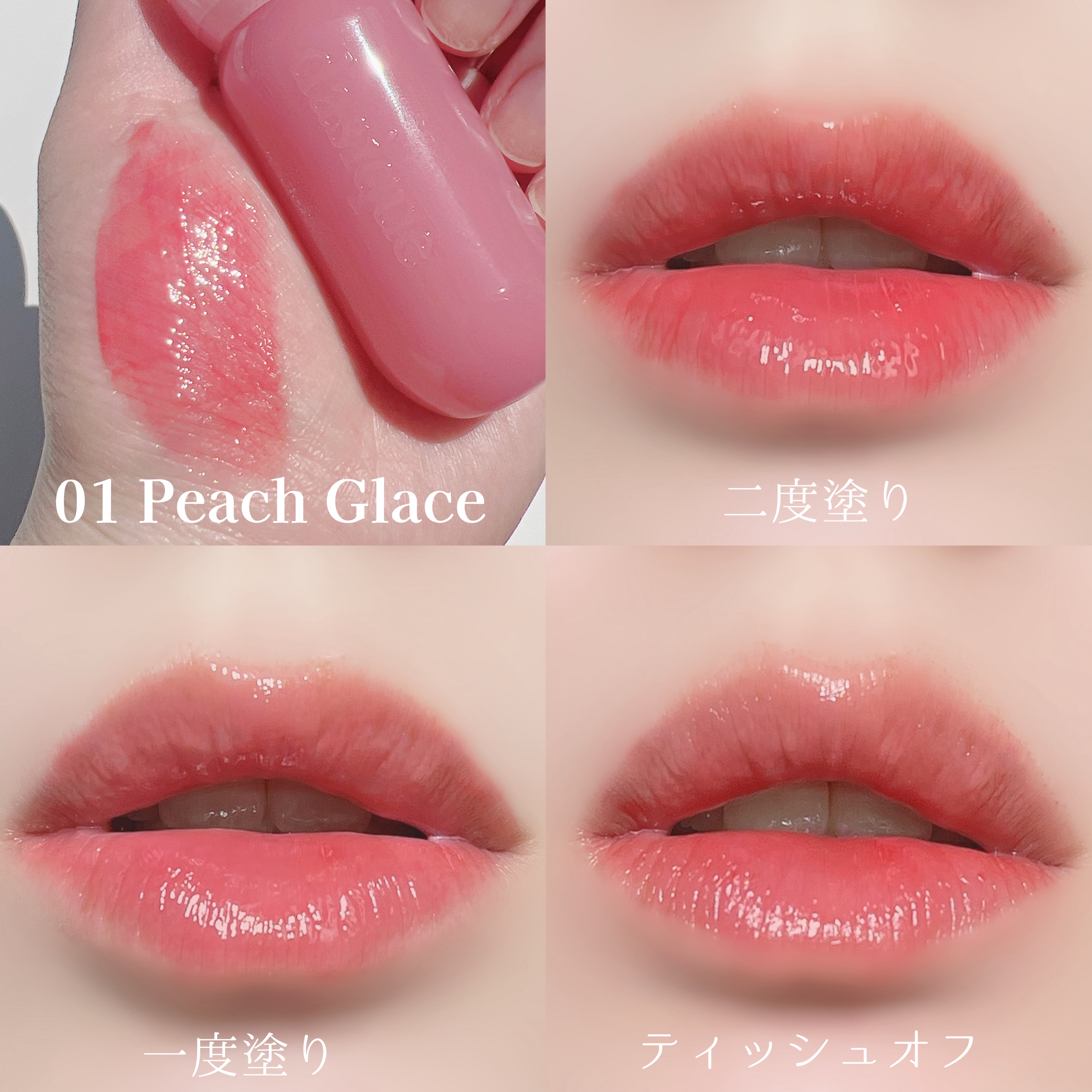 - みずみずしい果汁ツヤが続く、グロウティントミニ #01 やさしい春の日差しを含んだ桜ピンクカラーに、透明感あふれるグロッシーなツヤを重ねた、スプリングムードあふれるグロウティント。 #02 ティントとリップグロスを重ねたような、みずみずしく澄んだ果汁コーティング処方で、ひと塗りでぷるんとしたツヤ感を演出します。 #03 クリアで透明感のある果汁カラーが、重ねるほどにピュアで艶やかなグロウリップを叶えます。 #04 保湿オイルをたっぷり配合し、美しい発色はもちろん、乾燥や角質を気にせず、長時間うるおいが続くリップケア効果も実現。 咲き誇る花々の香りの中で、最も甘くやさしく広がる Sweet Blossom. ほんのりと広がっていくピンクピーチと春の旅路を、ぜひご一緒にお楽しみください。