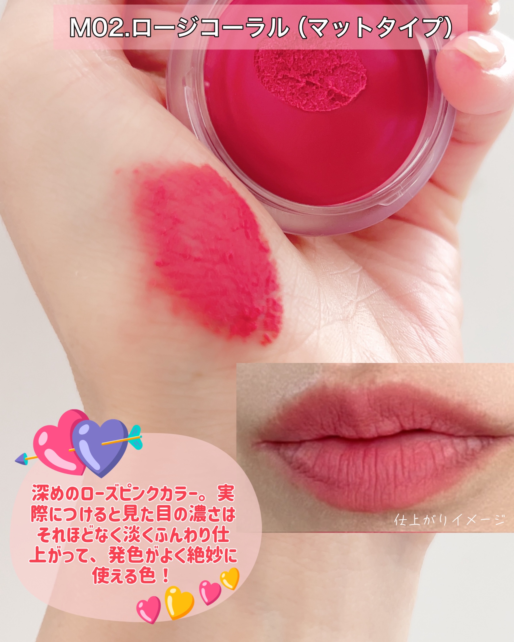 今回のリプモン新作は#モンスター果樹園・リップモンスター 18 とろけ落ちる蜜桃 ・リップモンスター 19 口染めライチの甘い罠 ・リップモンスター 20 いたずらベリーの道標落ちにくいリップモンスターから甘い果実のようなニュアンスピンク系の...