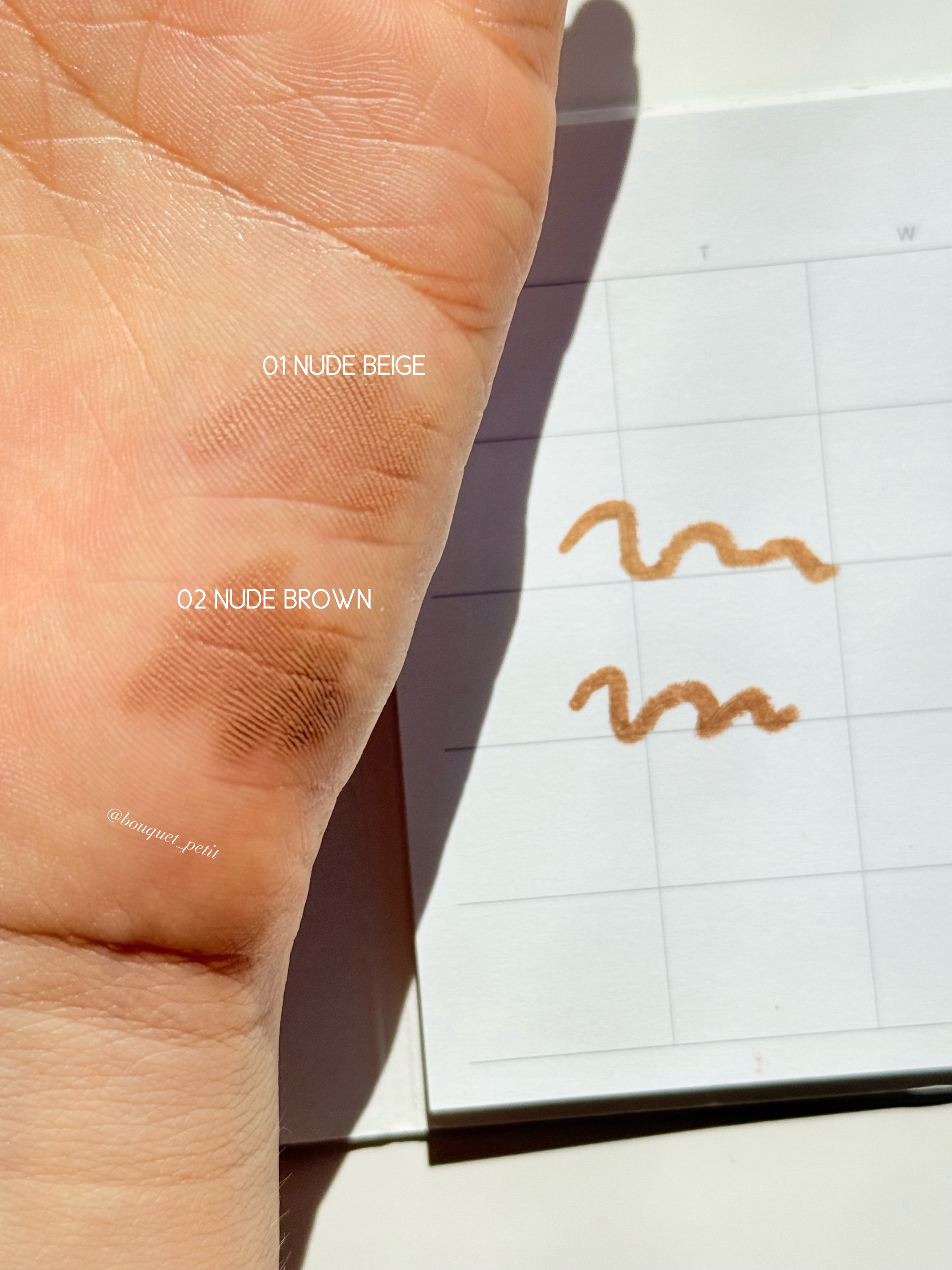 バレリーナ・ラナンキュラスがピンク系、 サーモングロー・サーモンピンクがオレンジまたはコーラル系。 サーモングローはTHE夏カラーのコーラルオレンジ! くすみがなく元気でクリアな印象に。 オールザットヌードは、ハイライターとして。 鼻筋にスッと入れるのが好きです。
