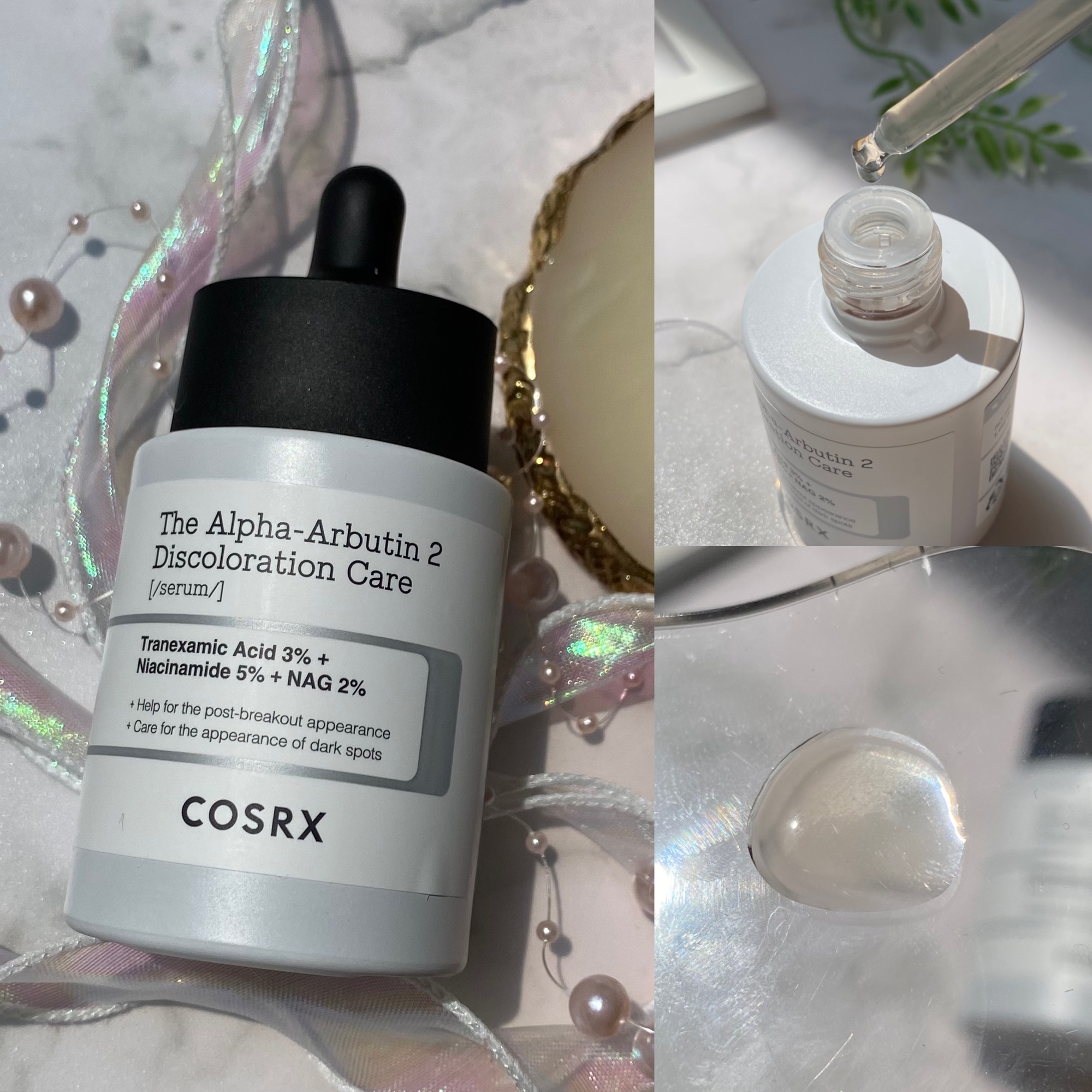 ニキビ跡や色素沈着に悩む人たちのために登場した、COSRXのダーマケアシリーズの新作🥳🌟 「アルファアルブチン」2%「ナイアシンアミド」5%、「トラネキサム酸」3%「アセチルグルコサミン」2%の4つの成分を配合し、ニキビ跡になる前の予防ならびにシミの悩み改善にアプローチします。 少し濁った薄茶色のセラムで、ほんのりとろみはあるけどサラッとみずみずしいテクスチャー🫧