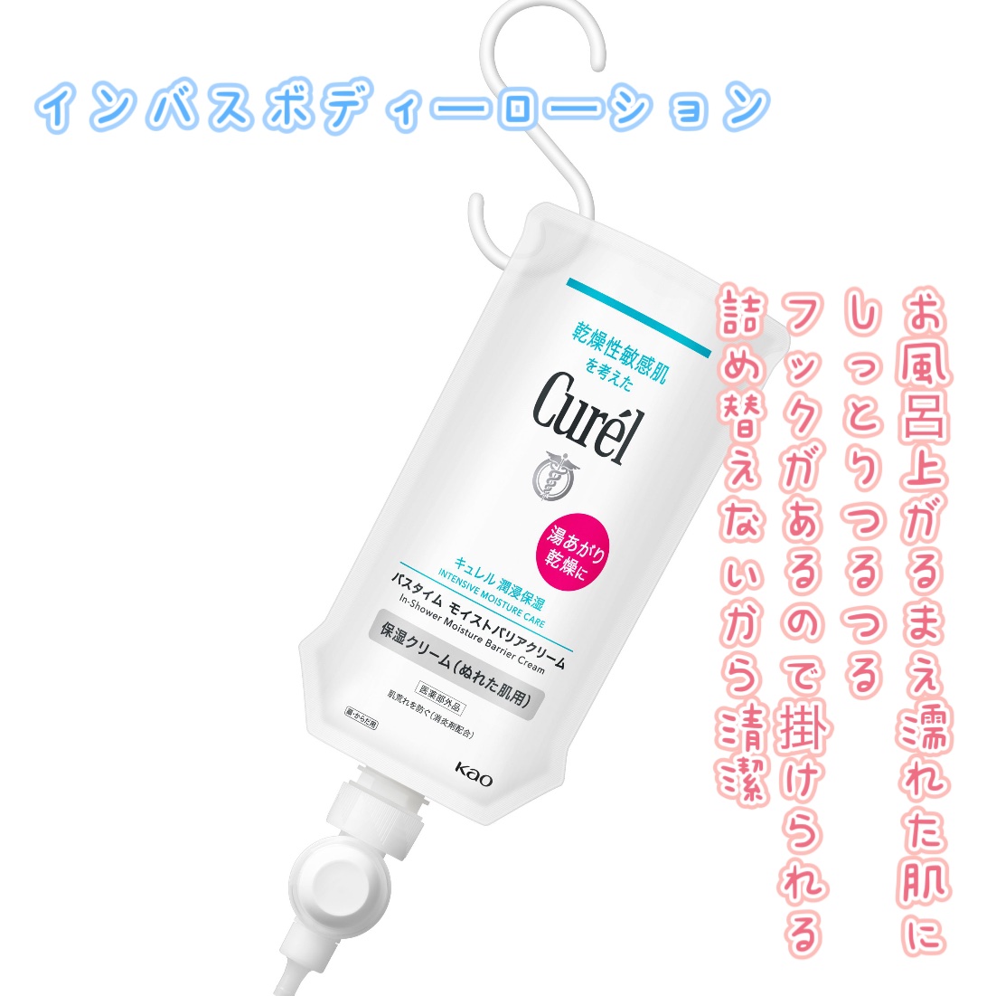 - 【敏感肌用】 湯あがり乾燥する前に、ぬれた肌に使うクリーム。潤いバリアラッピング。セラミド機能成分*(潤い成分)を含んだ潤いバリア膜が、肌がぬれたまま潤いを密封。タオルでふいても、保湿成分がしっかりと肌に残るので、全身膜で守られているような潤い肌に。 ●消炎剤配合(有効成分)配合。肌荒れを防ぐ。 ●長時間潤ったまま、健やかな肌に保ちます。(医薬部外品) *ヘキサデシロキシPGヒドロキシエチルヘキサデカナミド 商品に関するお問い合わせ 受付時間9:00~17:00(土曜・日曜・祝日除く) *製品の誤飲・誤食など緊急の場合は、受付時間外でもお電話ください キュレル:0120-165-698