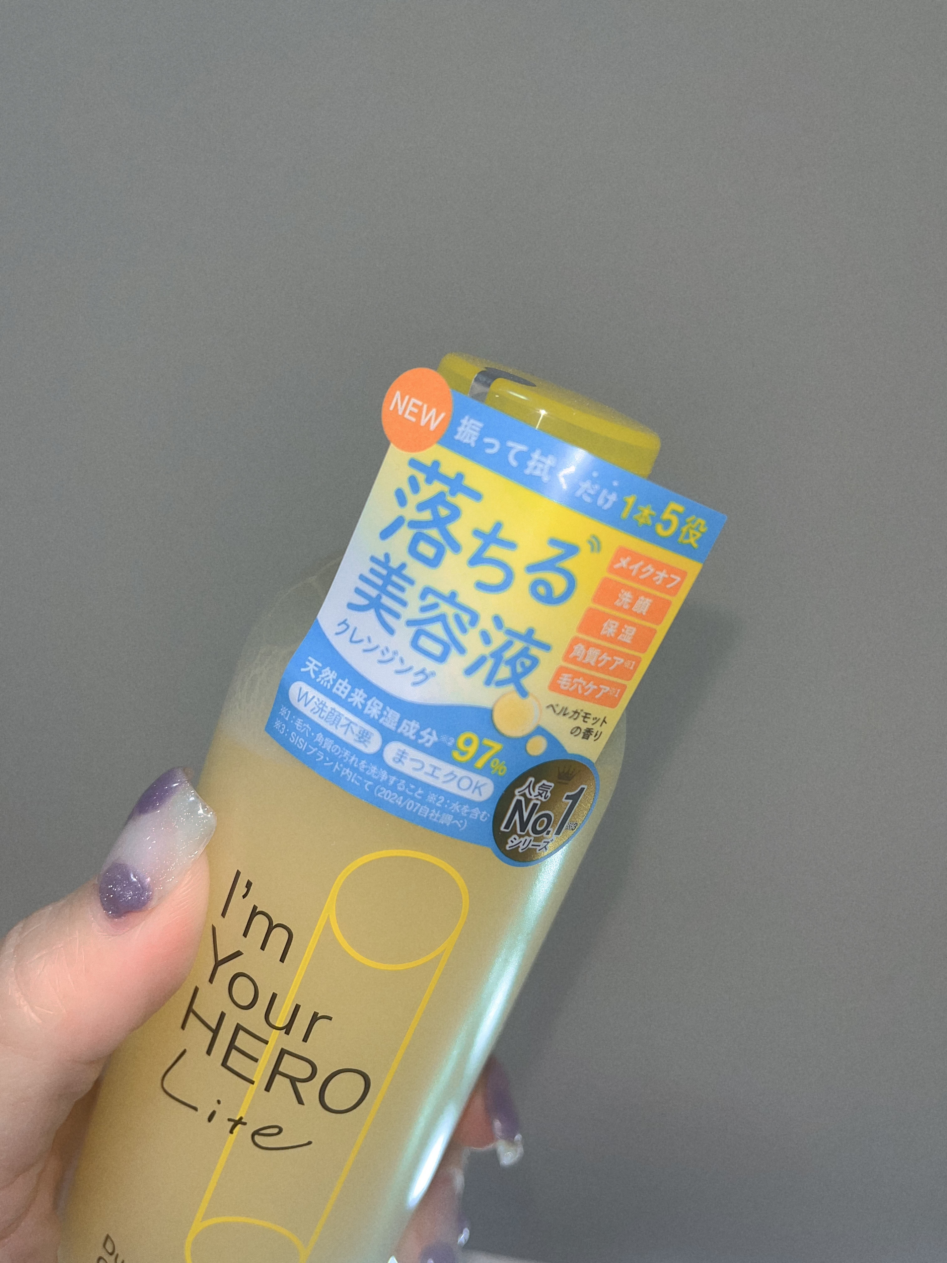 - 1. 30秒でスキンケア完了。1本5役を叶えるマルチな機能 メイクオフから洗顔、保湿、さらには毛穴ケア*²、角質ケアまでを一度に叶える秘密は、約3:7の黄金比からなるオイル×美容液の2層構造。シェイクすることで美容液がオイルを包み込み、不要なメイク汚れや皮脂・毛穴汚れは浮かせてオフしながらも、同時にうるおいを与えます。W洗顔、洗い流しは必要なく、シェイクしてコットンに取り拭き取るだけ。わずか30秒ですこやかな肌に整えます。 2. スマートに「肌が整う」体験を届ける軽やかな新処方 性別や年齢、肌質、季節やシーンを問わず、より多くの方にとっての使いやすさを追求するため、「アイムユアヒーロー ライト」はうるおいを保ちながらさらに軽やかな処方に仕上げました。1本5役の機能はそのままに、なじみやすく、よりウォータリーなみずみずしいテクスチャーで、朝も夜も心地よい使用感に。180mLのスマートなボトルでさらに持ち運びもしやすく、肌だけでなく首元や腕の日焼け止めをさっとオフする際などにも最適です。 3.「与える」ケアを叶える17種類*⁶の美容成分 ただ汚れをオフするだけではなく「与える」ケアも同時に叶えるため、軽やかな使用感でありながらも17種類*⁶の美容成分を配合。毛穴ケア*⁷を支えるビタミンC*⁸や、角質ケアを支える天然サリチル酸*⁹・ビタミンP*¹⁰、肌荒れを防ぐポアロイヤル*¹¹など、手軽さ、敏感な肌へのやさしさ、そしてスキンケアとしての効果を両立する美容液設計になっています。 またキーとなる洗浄成分には、定番ラインと同様にバージンオリーブ油由来の「オリベム*¹²」を採用。オリベム*¹²が持つ肌なじみの良さと「使うほどに肌がうるおう」という特徴により、洗い流さずともすこやかでうるおった肌に整えることが可能なクレンジングを実現しました。 *2 毛穴の汚れを洗浄すること *6 水を含む *7 うるおいにより毛穴を目立ちにくく見せること *8 アスコルビン酸(保湿成分) *9 サリックスニグラ樹皮エキス(保湿成分) *10 ビオフラボノイド(保湿成分) *11 10-ヒドロキシデカン酸(保湿成分) *12 オリーブ油PEG-7エステルズ(洗浄成分) 【全国のマツモトキヨシグループ、ココカラファイングループ※約2000店舗をはじめ、順次販路展開予定】※一部店舗を除く
