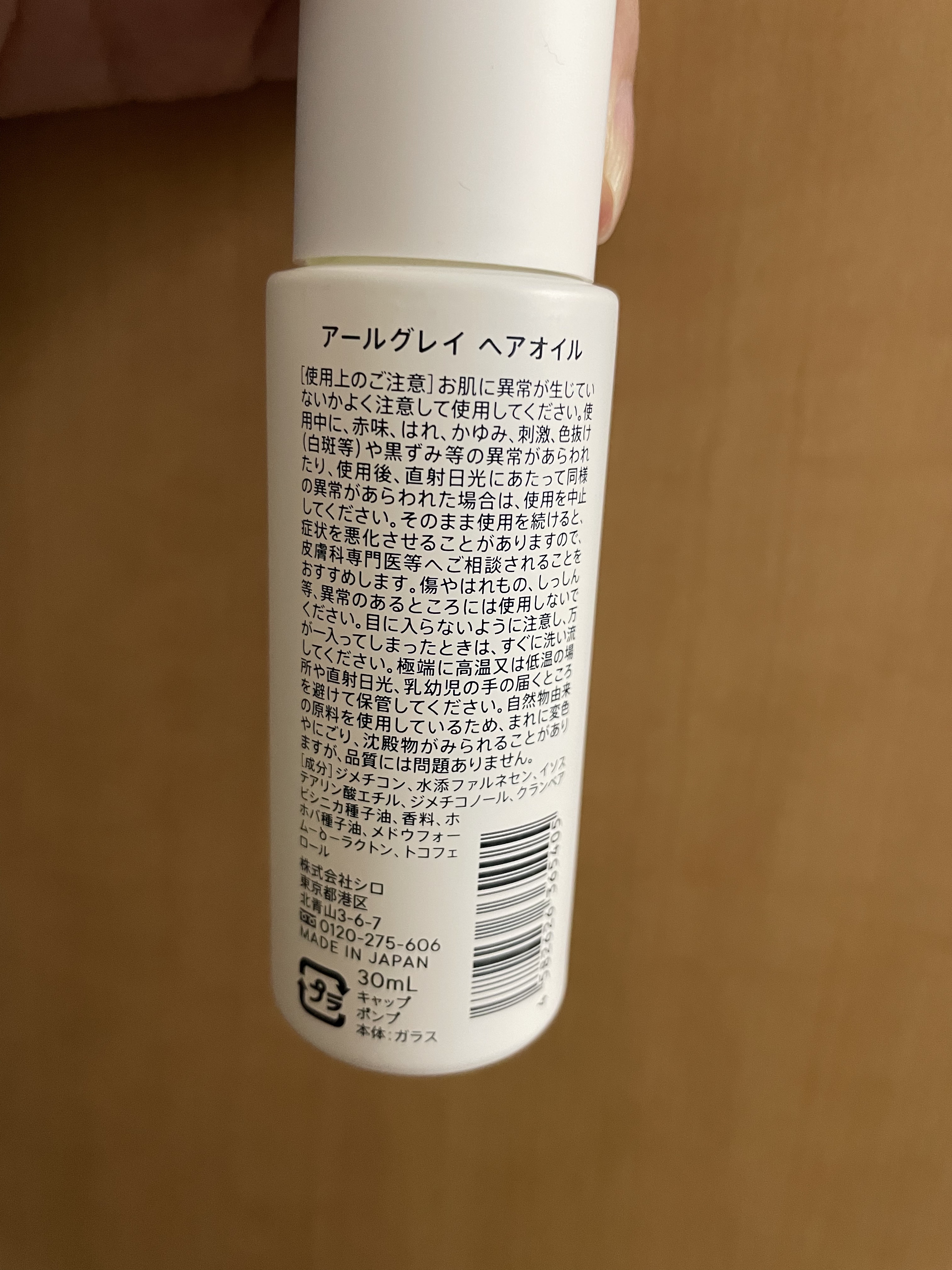 商品詳細情報SHIRO アールグレイ ヘアオイル