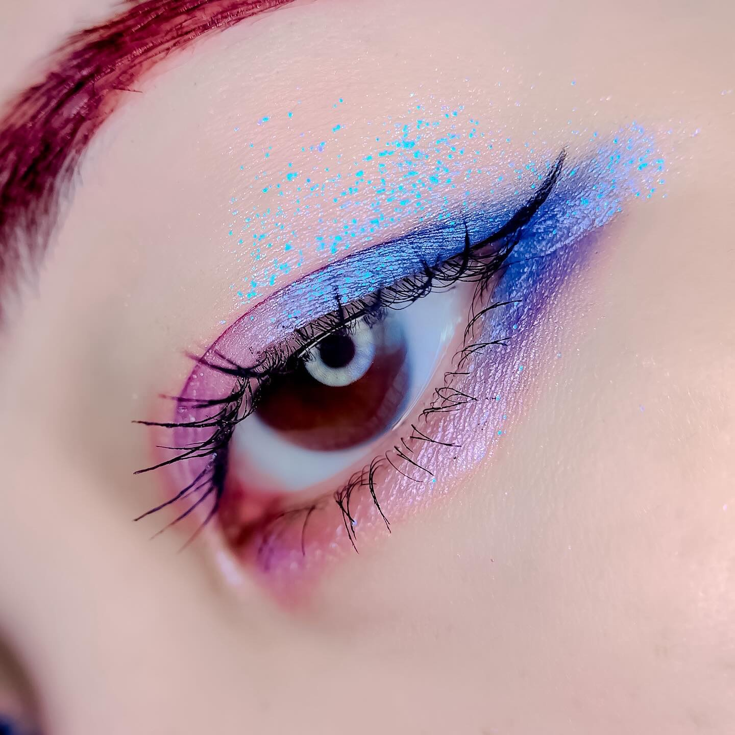 ベースに右上、目頭から黒目上に真ん中、黒目〜目尻に右下を、左上を目頭にくの字に塗ってもらいました✨ ピンクサクラよりもクールな感じで、目で見た色より私の肌では紫っぽく発色しました😍 上2つはラメはぎっしりでときめく💓 ブラウンメイクがとても苦手だけれどこれならブラウンメイク出来そう👌(かなり紫寄りですが) くすみ感は強いので苦手な方は厳しいかも…(特に真ん中) クールな印象になるので大人顔さん向けor大人顔になりたい方向けのイメージです✨