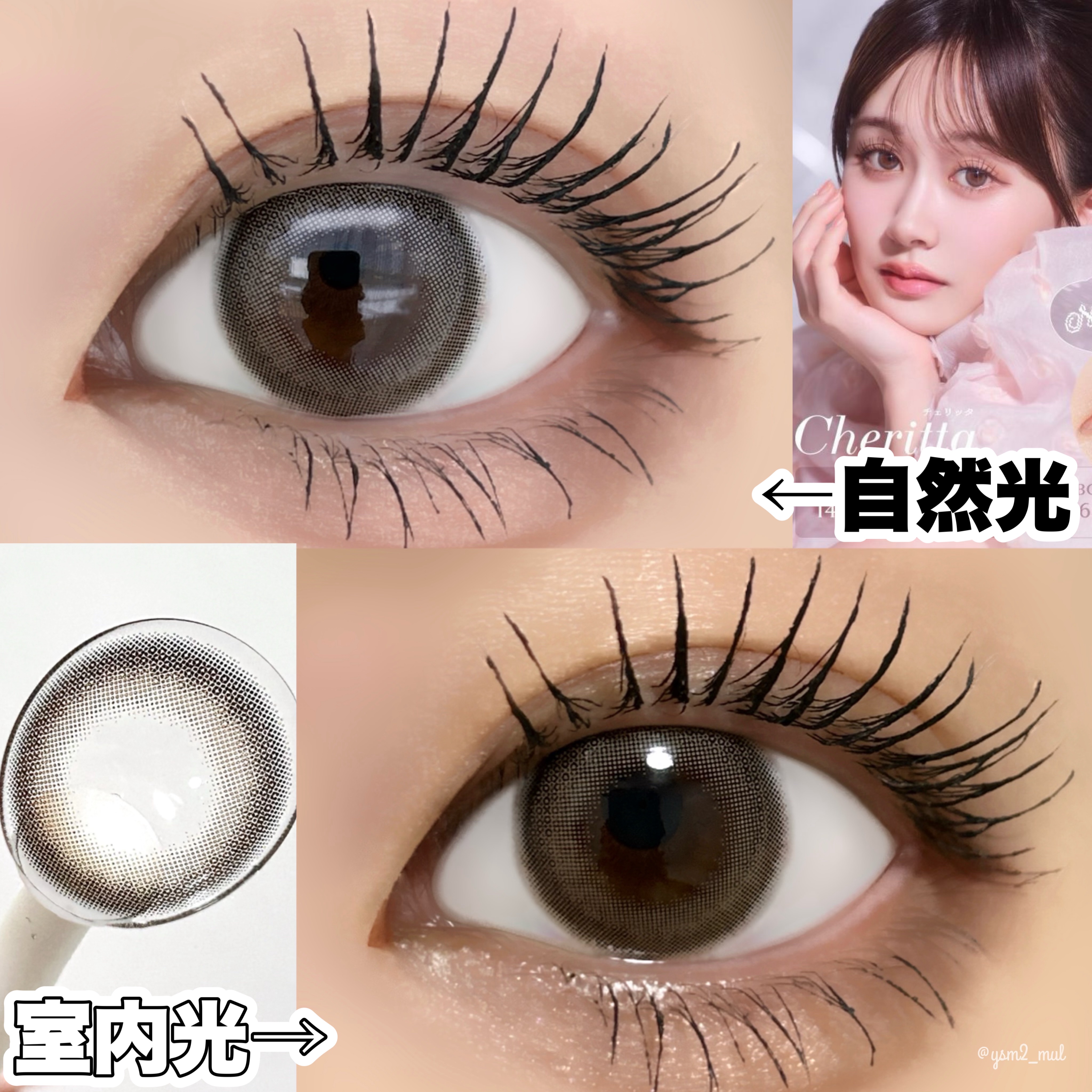 - “仕込む”ナチュラルメイク。 もっと自然に可愛くなりたい、そんなすべての女性へ。 Cheritta(チェリッタ)は、「イメチェンしたいけど変わりすぎるのは苦手」「ちょっとだけあか抜けたい」という全ての女性へ向け、メイクの過程にチェリッタを加えるだけで、いつもより自然に可愛くなれるナチュラルなデザインのカラーコンタクトレンズブランドです。 カラーコンタクトレンズの不適正使用による眼障害の危険性等などがあります。 ●コンタクトレンズは高度管理医療機器です。不十分な洗浄・消毒など不適切なケアや、長時間・交換期間を超えた装用により、アレルギー性結膜炎、角膜感染症、角膜潰瘍等の重篤な眼障害が発生する危険性があります ●ご使用前に取扱説明書を確認してください 使用上の留意事項 ●眼科医院等を受診してからお求めください ●眼に異常を感じたら直ちにレンズ使用を中止し、お近くの眼科等で診察を受けてください ●医師の指示にしたがってご使用ください ●コンタクトレンズを装用する場合、自覚症状がなくても、眼科医院等での定期検査を受けてください ●レンズに不具合がある場合は使用しないでください
