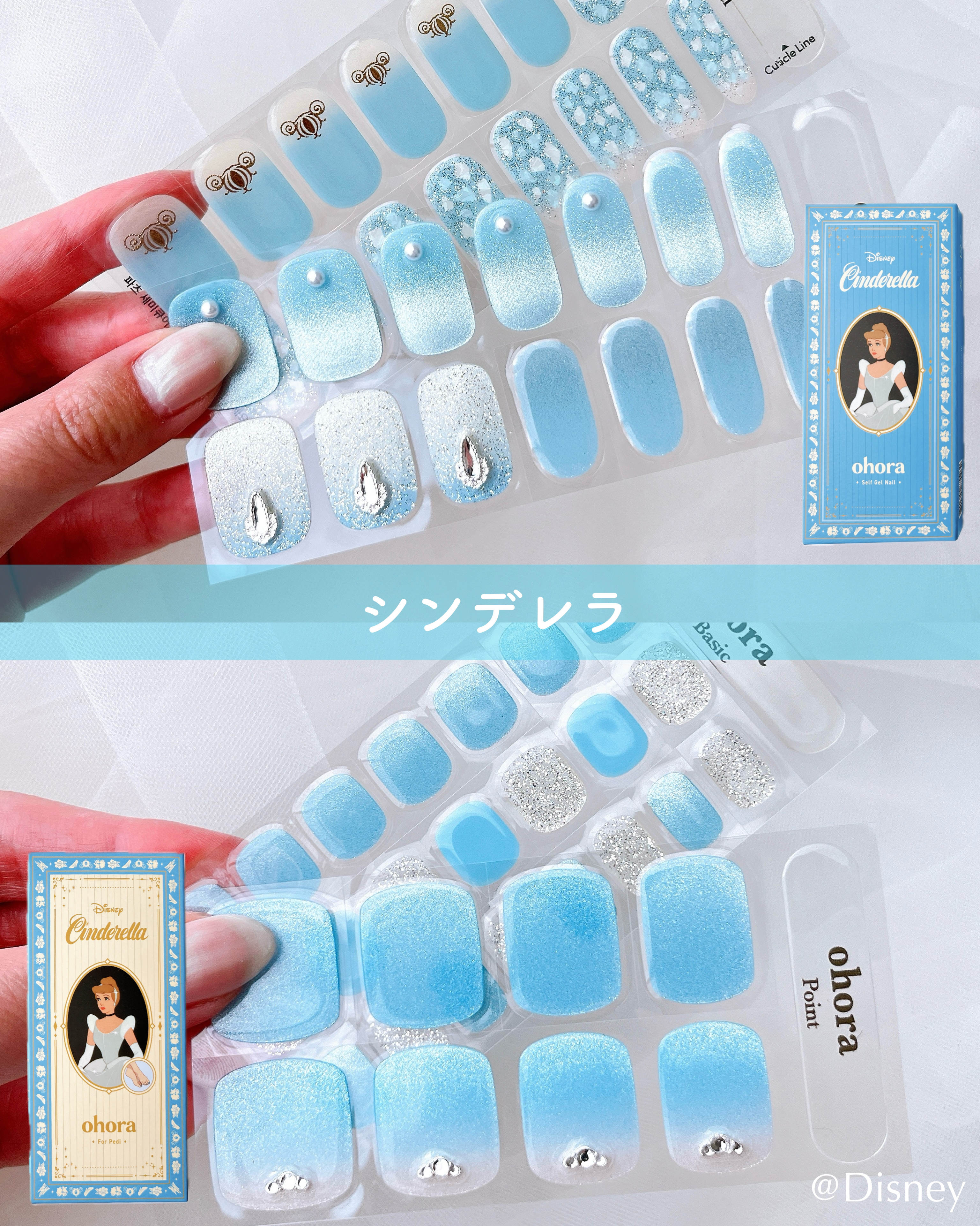 - ▼ラインナップ:セミキュアジェル(シールタイプ)ハンド2種、ペディキュア4種 ハンド&ペディキュアセット(4set) 【先行予約限定】 このたび新たに加わるのは「白雪姫」「シンデレラ」モチーフの愛らしく優雅なハンドデザイン2種と、「ラプンツェル」「ジャスミン」「白雪姫」「シンデレラ」モチーフの足元を美しく魅せるペディキュアデザイン4種。新緑が美しい初夏のお出かけシーズンにもぴったりなデザインに仕上げました。 先行予約 : 第一弾 2025年4月18日(金)17:00~ 2025年4月21日(月)11:59まで 第二弾 2025年4月21日(月)17:00~ 2025年4月24日(木)11:59まで ※先行予約はohora公式サイトでのみ実施いたします