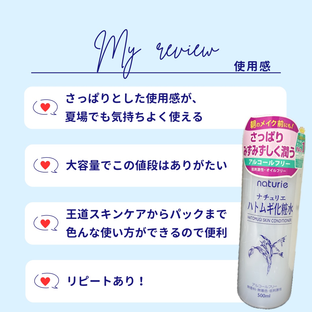 今回ナチュリエ(@naturie_imju)様から頂きました🎁✨ナチュリエ🩵ハトムギ化粧水(ナチュリエスキンコンディショナーR)内容量:500ml参考価格:748円(税込)💙ハトムギ保湿ジェル(ナチュリエスキンコンディショニングジェル)内容量...