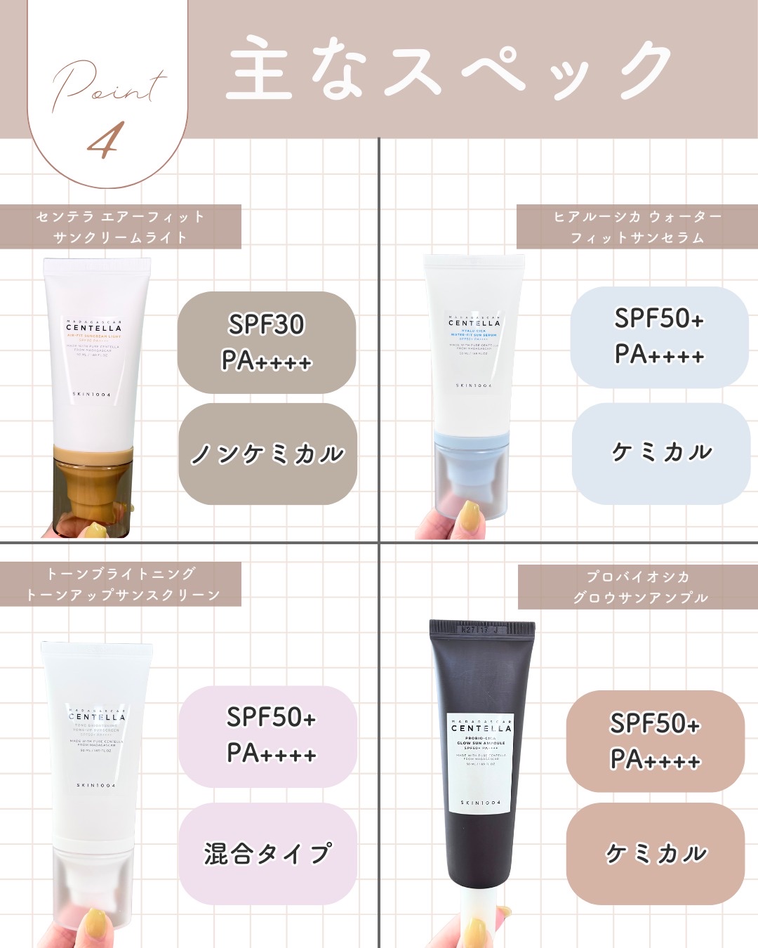 \大人気ブランドのサンケアを比較したよ/SKIN1004@skin1004_official🤎センテラサンクリームライト🤎センテラサンクリームプラス🩵ヒアルーシカサンスティック🤍トーンブライトニングサンスクリーン🩷ポアマイジングサンスクリーン...