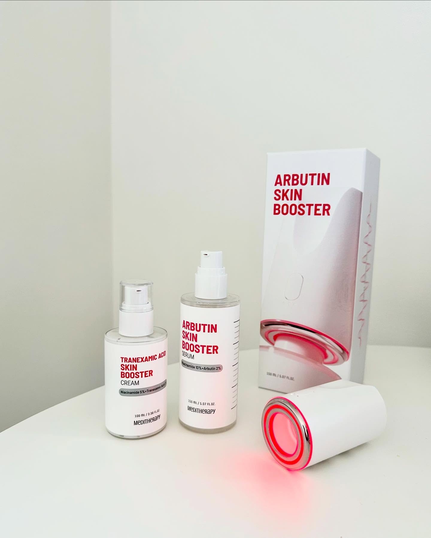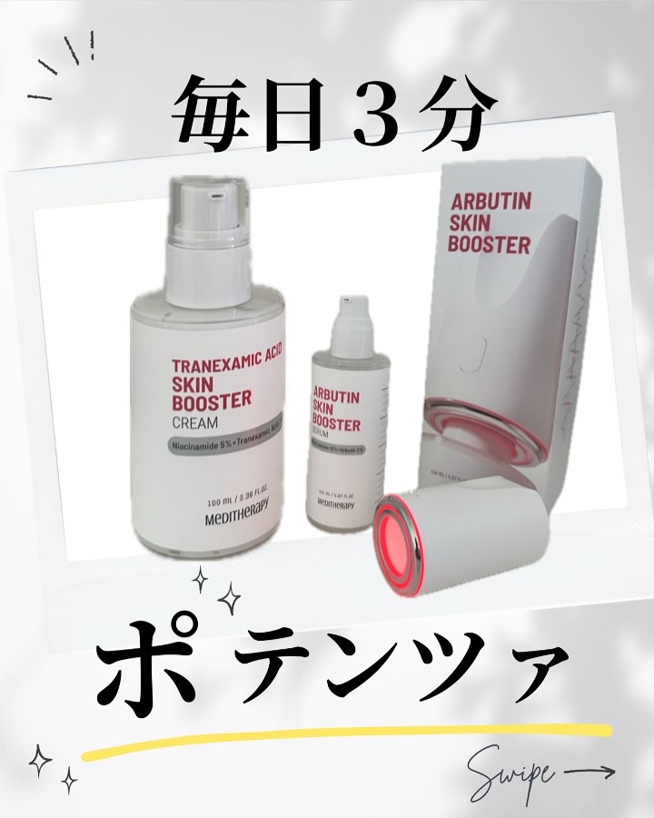 毎日3分ポテンツァ✨メディテラピーの新作消しゴムデバイスブースター!■アルブチンスキンブースターセラム■トラネキサム酸スキンブースタークリーム3段階調節出来るEPデバイスがキャップだから使いやすい!アルブチンスキンブースターセラムqoo10....
