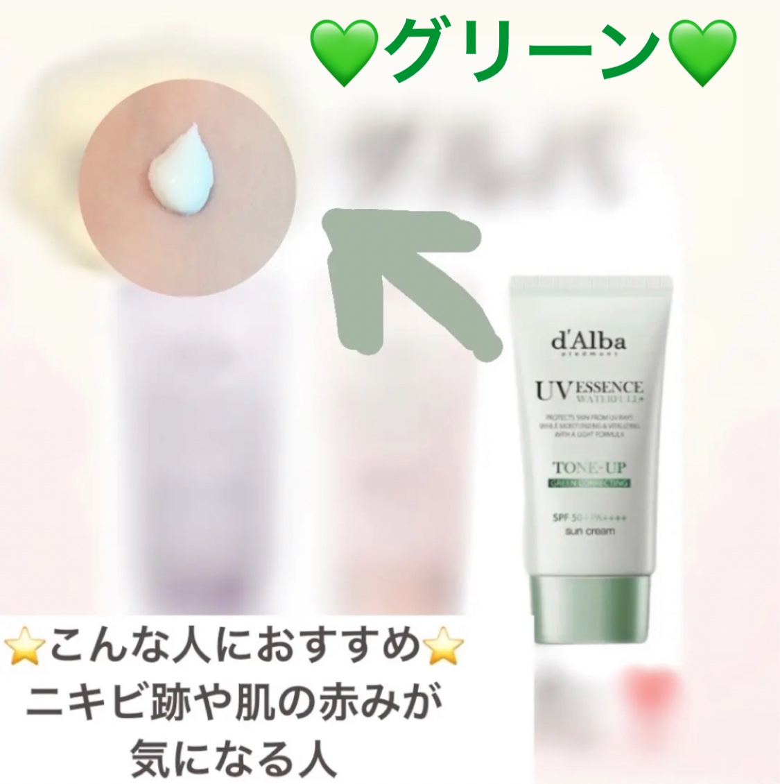 ダルバトーンアップサンクリームグリーン⋆⋆SPF50+PA++++化粧下地としても日やけ止めとしても使用可能✨️ダルバさんのトーンアップサンクリームシリーズにグリーンが仲間入り💓私は赤みが出やすい肌質でカラー下地はグリーン系が好きなので、発...