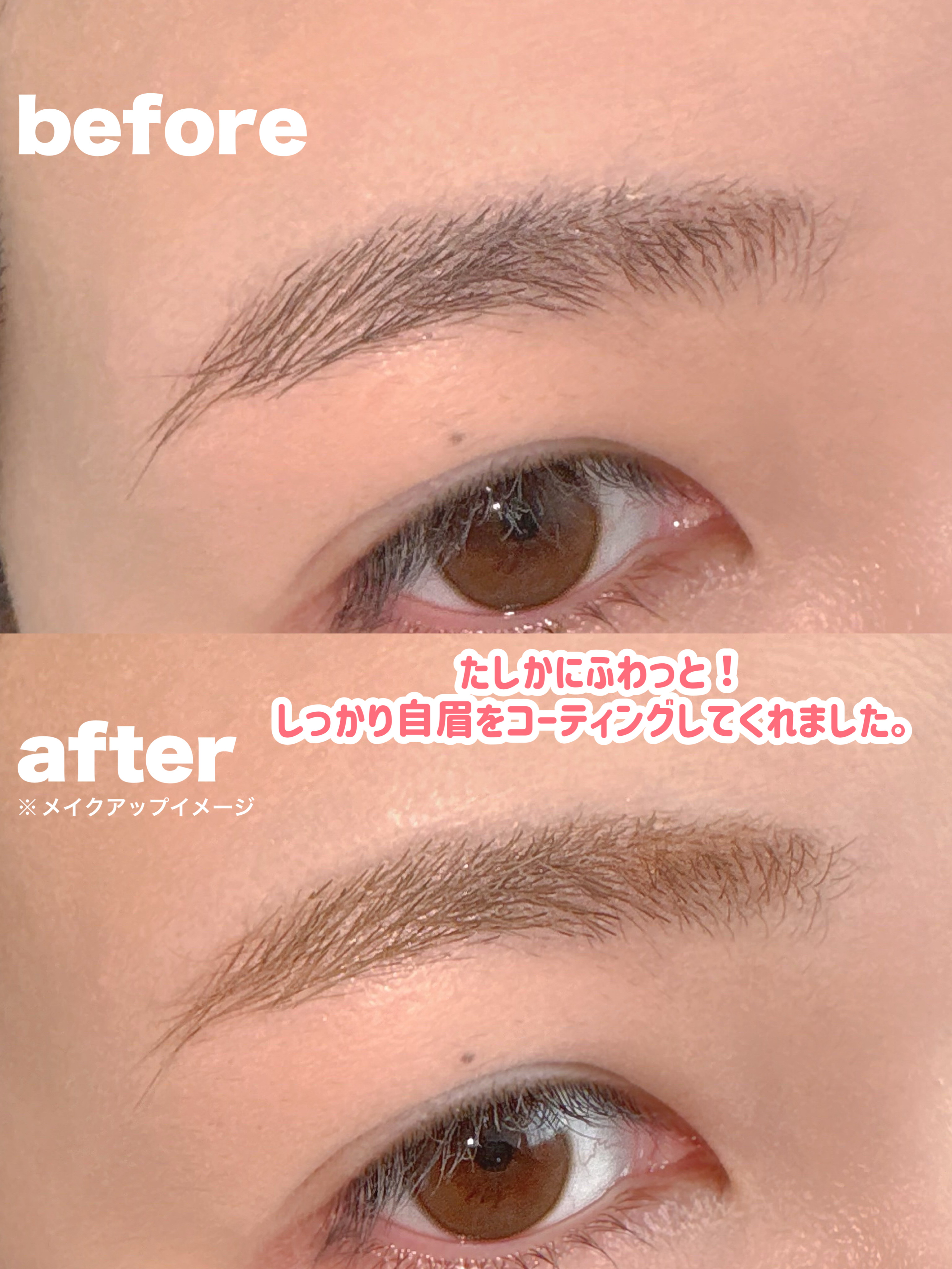 - ●ひと塗りでカラーリングしたような仕上がりが1日中続く。柔らかな立体眉を叶える高発色アイブロウマスカラです。 ●速乾性に優れたみずみずしいベースを採用。 重ねてもごわつくことなく、 まるで自眉のように1本1本均一な仕上がりを叶えます。 ●ふんわりボリュームアップを叶える柔らかな繊維を配合。 毛が立ち上がったような立体的でふんわりとした眉に導きます。 ●ソフトキープ成分配合。柔軟な膜を形成し、パリッと固まりすぎず自然な毛流れをキープします。 ●小回りがきく、ふわっと丸形ブラシを採用。 眉毛が薄い方や眉尻などの毛が短い部分でも地肌につきにくく、根もとからしっかりと色づきます。 ●お湯で落とせるフィルムタイプ。 ●最後まで使い切れるチューブ容器。 ●美容液成分&眉毛補修成分配合。 やさしく眉をケアします。 ●無香料