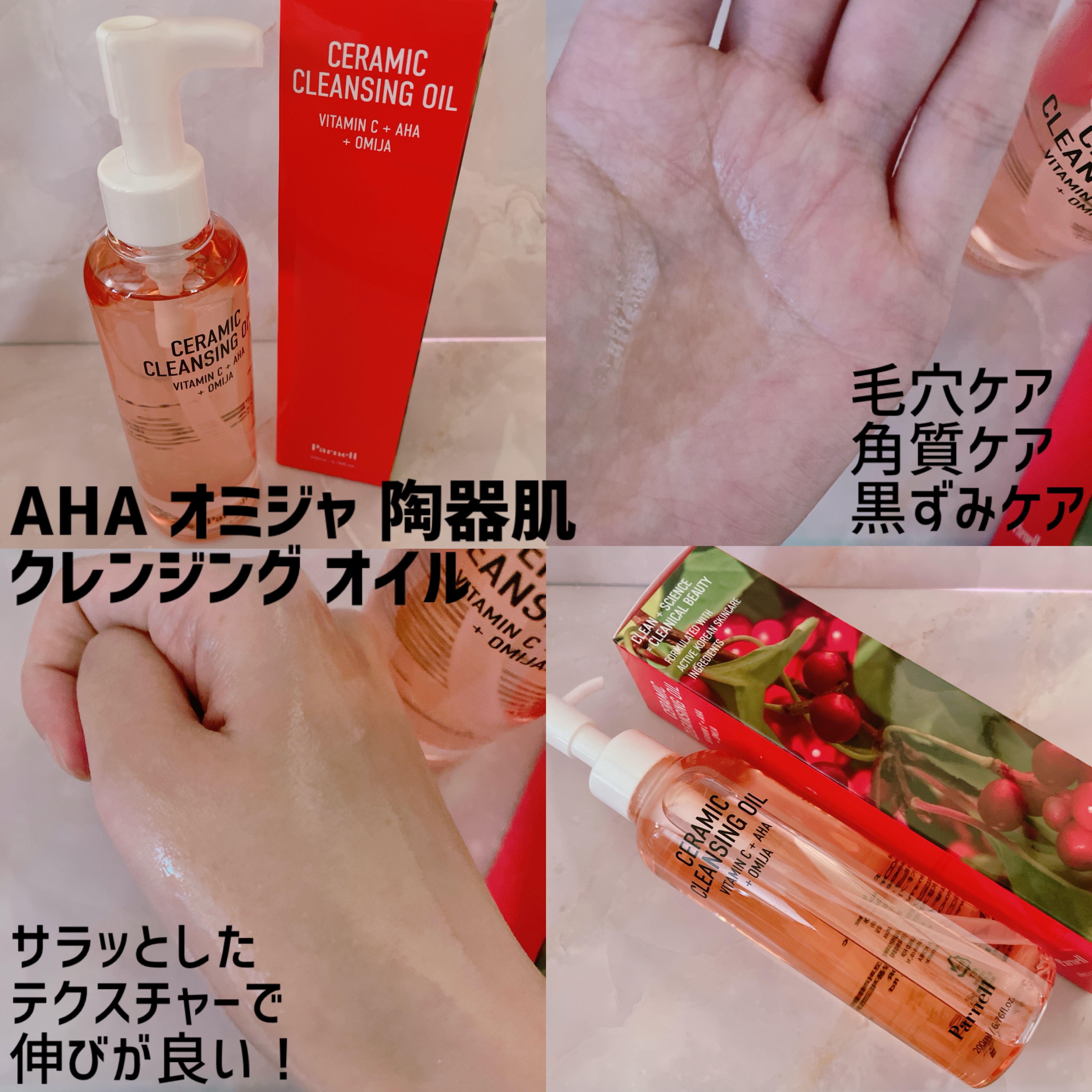 #PRParnellAHAオミジャラインAHAとお肌の乾燥やくすみにアプローチする果実オミジャの成分配合でやさしい角質、毛穴ケア。つるっとしたなめらかな肌へ。※詳細は画像参照。◽️使用感クレンジングオイルはさらっとしたオイルでメイク落ちが良い...