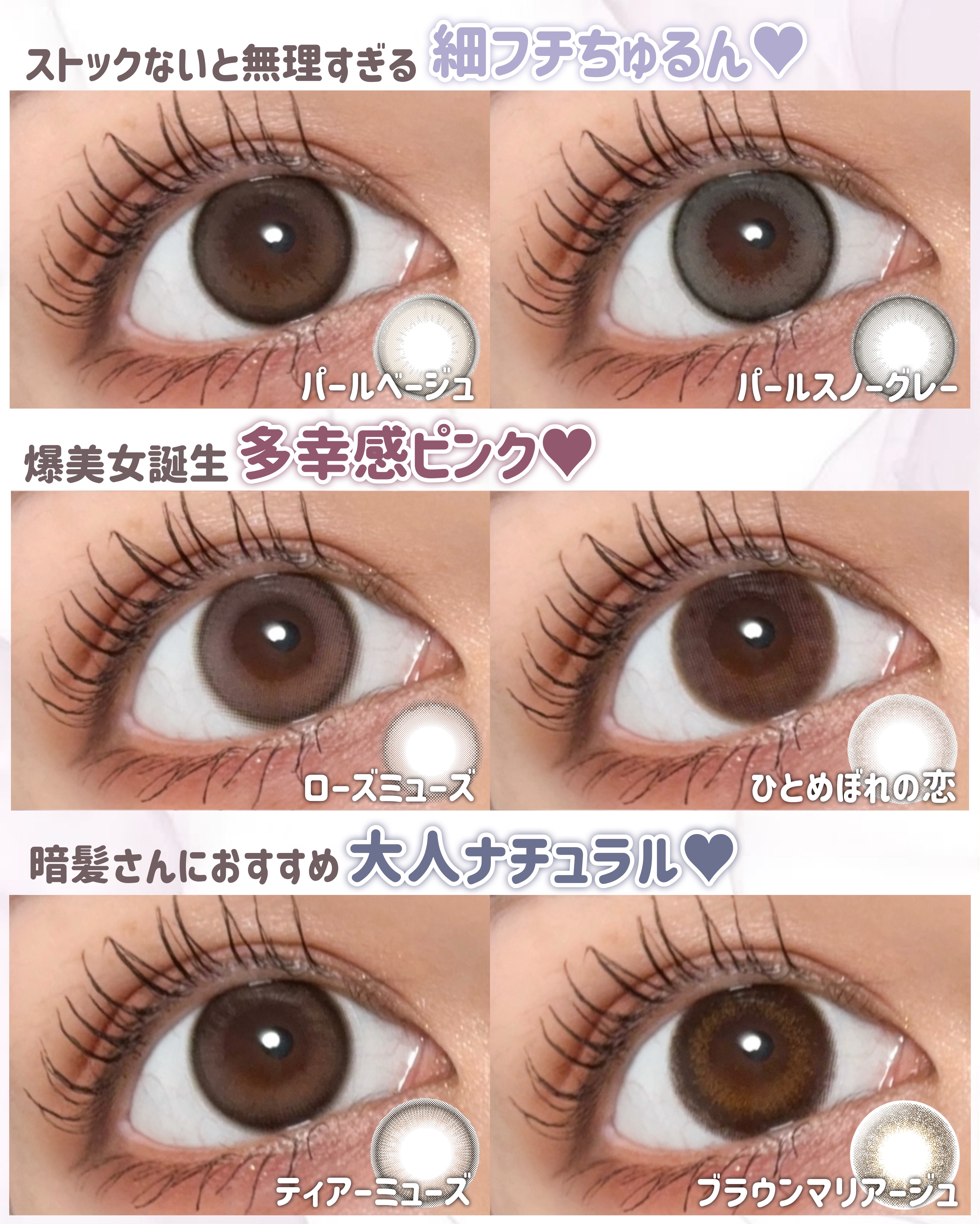 派手じゃないけどしっかり盛れるエバーカラー。今回は瞳をちゅるんと綺麗に見せてくれる細フチカラコンを3種レビュー! 可愛らしさ満点だからピンクメイクと合わせるのが好き💓 ナチュラルに黒目を際立たせることができるので、普段使いもしやすいです♡