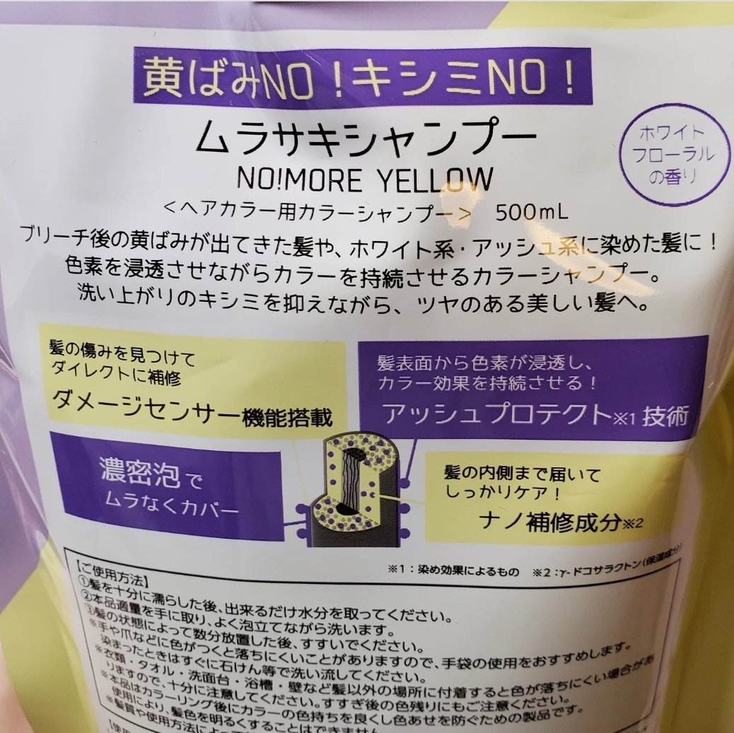- <シルバー> 水、ラウレス硫酸Na、ラウラミドプロピルベタイン、グリセリン、コカミドDEA、ココイルメチルタウリンNa、加水分解ケラチン(羊毛)、加水分解シルク、加水分解コラーゲン、γ-ドコサラクトン、液状ラノリン、(加水分解シルク/PGプロビルメチルシランジオール)クロスポリマー、アルガニアスピノサ核油、シア脂、ハチミツ、トコフェロール、フィトステロールズ、クエン酸、ジオレイン酸PEG-120メチルグルコース、BG、ポリクオタニウムー10、ポリクオタニウムー7、ベへントリモ二ウムクロリド、ジステアリルジモニウムクロリド、プロパンジオール、塩化Na、インプロパノール、エタノール、EDTA-2Na、安息香酸Na、フェノキシエタノール、香料、(+/-)塩基性青99、塩基性茶16、塩基性赤76、塩基性紫2、HC青2 <ピンク> 水、ラウレス硫酸Na、ラウラミドプロピルベタイン、グリセリン、コカミドDEA、ココイルメチルタウリンNa、加水分解ケラチン(羊毛)、加水分解シルク、加水分解コラーゲン、γ-ドコサラクトン、液状ラノリン、(加水分解シルク/PGプロビルメチルシランジオール)クロスポリマー、アルガニアスピノサ核油、シア脂、ハチミツ、トコフェロール、フィトステロールズ、クエン酸、ジオレイン酸PEG-120メチルグルコース、BG、ポリクオタニウムー10、ポリクオタニウムー7、ベへントリモ二ウムクロリド、ジステアリルジモニウムクロリド、プロパンジオール、塩化Na、インプロパノール、エタノール、EDTA-2Na、安息香酸Na、フェノキシエタノール、香料、(+/-)塩基性青99、塩基性茶16、塩基性赤76、塩基性紫2、HC青2 <ムラサキ> 水、ラウレス硫酸Na、ラウラミドプロピルベタイン、グリセリン、コカミドDEA、ココイルメチルタウリンNa、加水分解ケラチン(羊毛)、加水分解シルク、加水分解コラーゲン、γ-ドコサラクトン、液状ラノリン、(加水分解シルク/PGプロビルメチルシランジオール)クロスポリマー、アルガニアスピノサ核油、シア脂、ハチミツ、トコフェロール、フィトステロールズ、クエン酸、ジオレイン酸PEG-120メチルグルコース、BG、ポリクオタニウムー10、ポリクオタニウムー7、ベへントリモ二ウムクロリド、ジステアリルジモニウムクロリド、プロパンジオール、塩化Na、インプロパノール、エタノール、EDTA-2Na、安息香酸Na、フェノキシエタノール、香料、(+/-)塩基性青99、塩基性茶16、塩基性赤76、塩基性紫2、HC青2