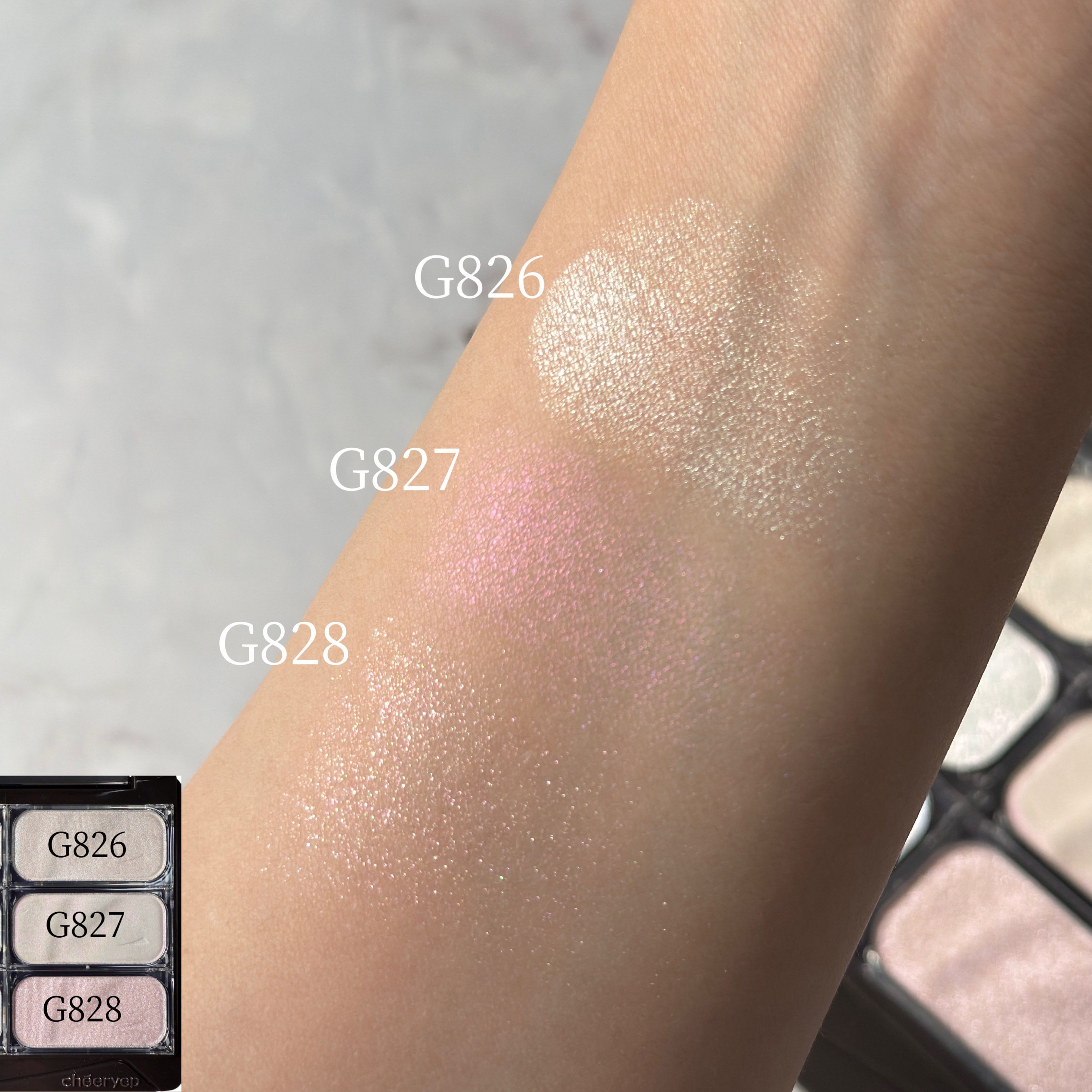 CHEERYEPカスタムシャドウ🎶🌟G821G822G823G824G825G826G827G828E046粉質もしっとり系とラメ系があるけどどれも密着感良くて最高だ😭💯朝から晩までこれをつけてたらずーーっと発光してくれてる!!!!いろんな偏...