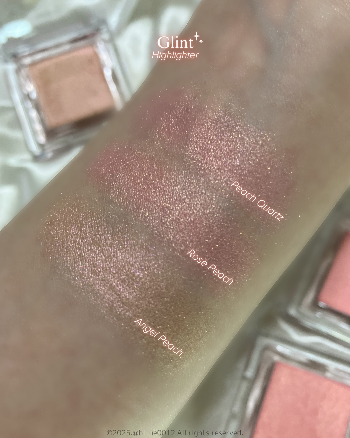 新色ピーチビームハイライトが可愛すぎた…🍑多幸感が欲しい方必見🌼!!!♥Glint#ビディボブハイライター#エンジェルピーチ👼🏻→ピンクゴールド系、神秘的ピーチビーム 私はハイライトとして部分使いが好き☆#ローズピーチ🌹→ローズピーチ系、多幸...