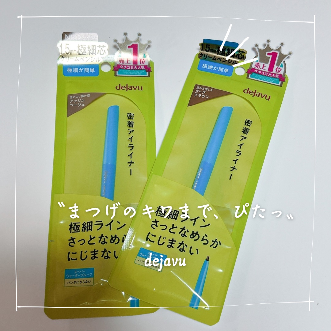 《dejavu》▫️「密着アイライナー」極細クリームペンシルcolor:ダークブラウン、アッシュベージュ【提供:LIPS様デジャヴュ様】よりいただきました、ありがとうございます💙なめらかにとろける密着アイライナー✨なめらかなのににじみにくい仕...