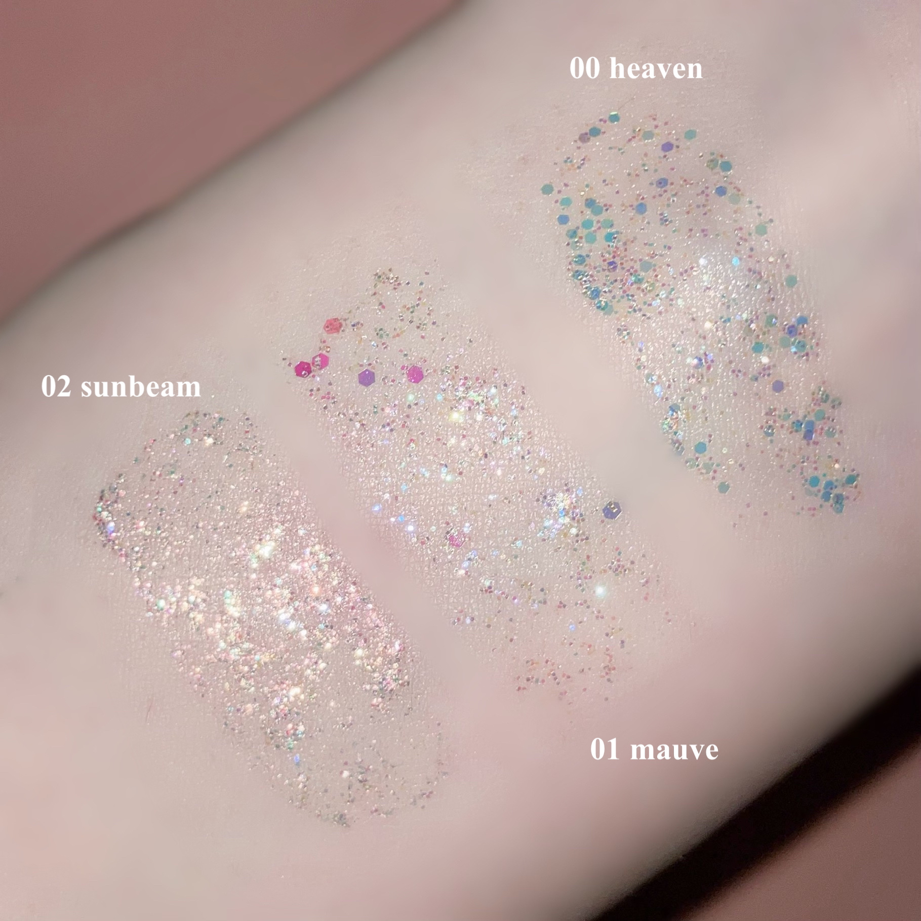 Dear.Aグリッターアイシャドウ00HEAVEN,01MAUVE,02SUNBEAMDear.Aさまからいただきました。Instagramでの当選品です!!ありがとうございます💕00HEAVENクリアホワイト丸形スパンコール角度によって様々...