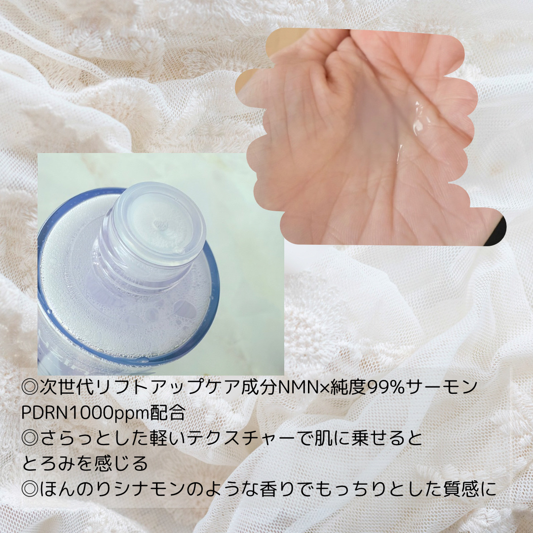 - スキンケアのファーストステップに! ハリケア成分NMN*¹と100%ピュアPDRN*²で 弾むようなツヤ肌へと導くトリートメントトナー。 *1ニコチンアミドモノヌクレオチド(整肌成分) *2DNAーNa(整肌成分)