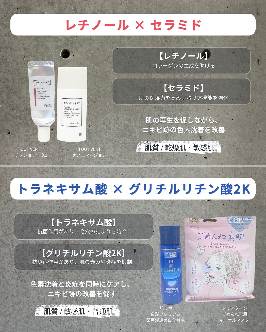 レチノールは美肌効果がめちゃめちゃ高い😳! ただレチノールは副反応が出てしまう方が多いので、使用の際は様子を見てください😭💧 🤍ニキビ、毛穴にお悩みの方向けに情報を発信中◎
