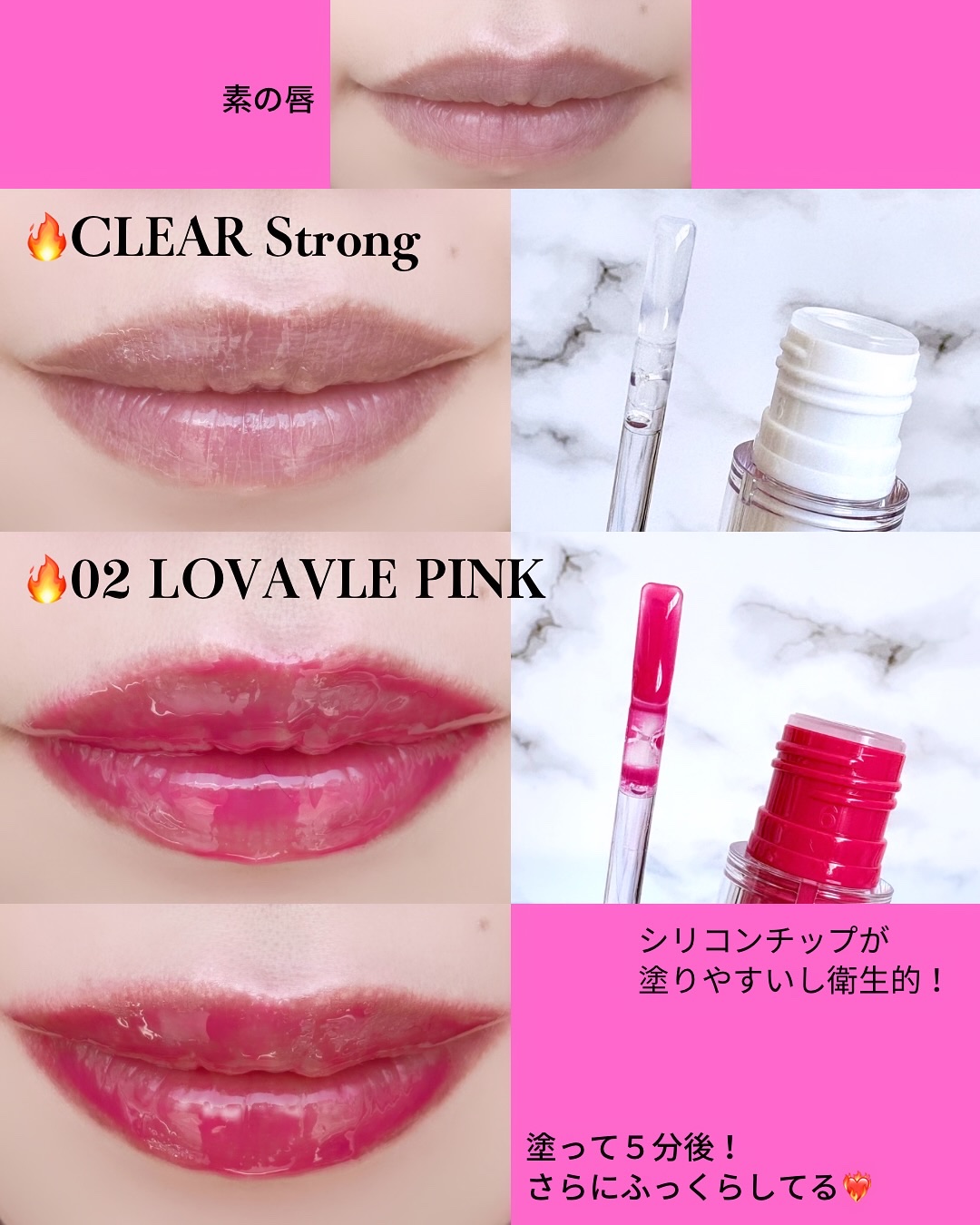 ヒアルロン酸を注入したような艶とボリューム感!コスノリウォーターフルリッププランパー@cosnori_jp「めっちゃ痛い😖」と評判の、STRONG01CLEARとSTRONG02LOVABLEPINKをお試し♪使いやすいシリコンチップがとって...