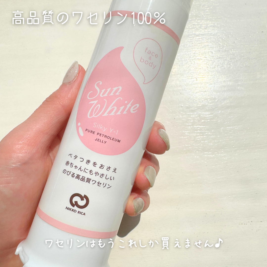 何を塗っても肌荒れが治らないときにおすすめのスキンケアです🙌🏻 サンホワイトは普通のワセリンよりも柔らかくて伸びが良く、ベタつきが少ないのでかなり使いやすいです! ソンバーユはワセリンよりも保湿力があって、しっとりうるおい感があります。