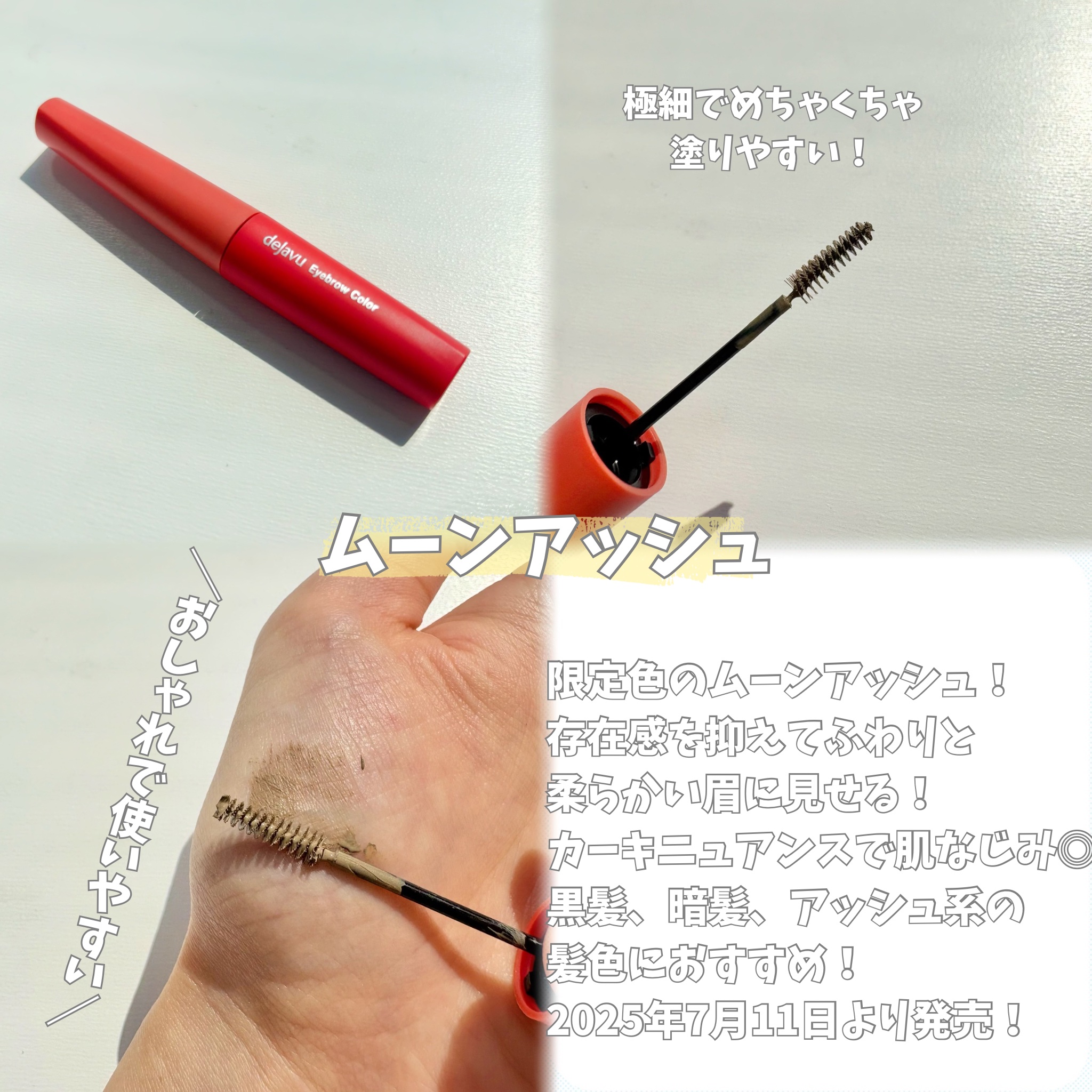 デジャヴュさまからいただきました。デジャヴュ「フィルム眉カラー」アイブロウカラームーンアッシュ数量限定ピンクブラウン定番色¥880極小ブラシでしっかり色づく眉マスカラ。仕上がりはふんわり自然な感じが1日中続くのが嬉しい☺️限定色のムーンアッシ...