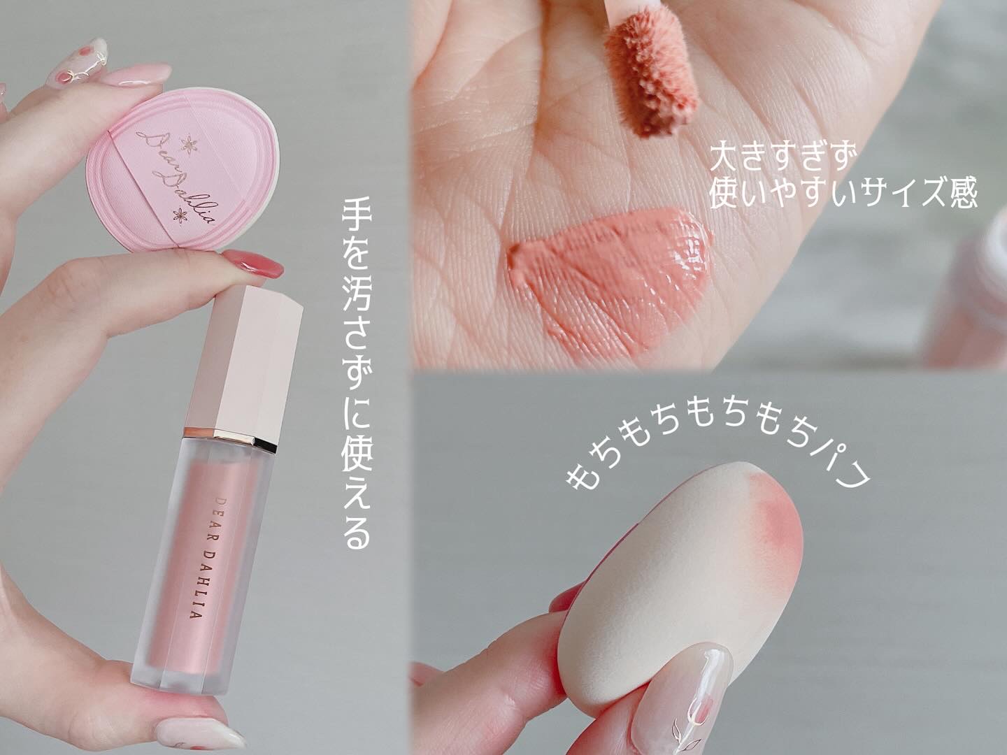 #ほてりチーク 🍑🥛ペタルドロップリキッドブラッシャーのBARELY(ベアリー)とフィンガーパンパンパフがセットになったディアダリアの限定企画セット。暖かいムードのウォームコージーピンクカラーでイエベ・ニュートラルの方におすすめ。可愛いアプリ...