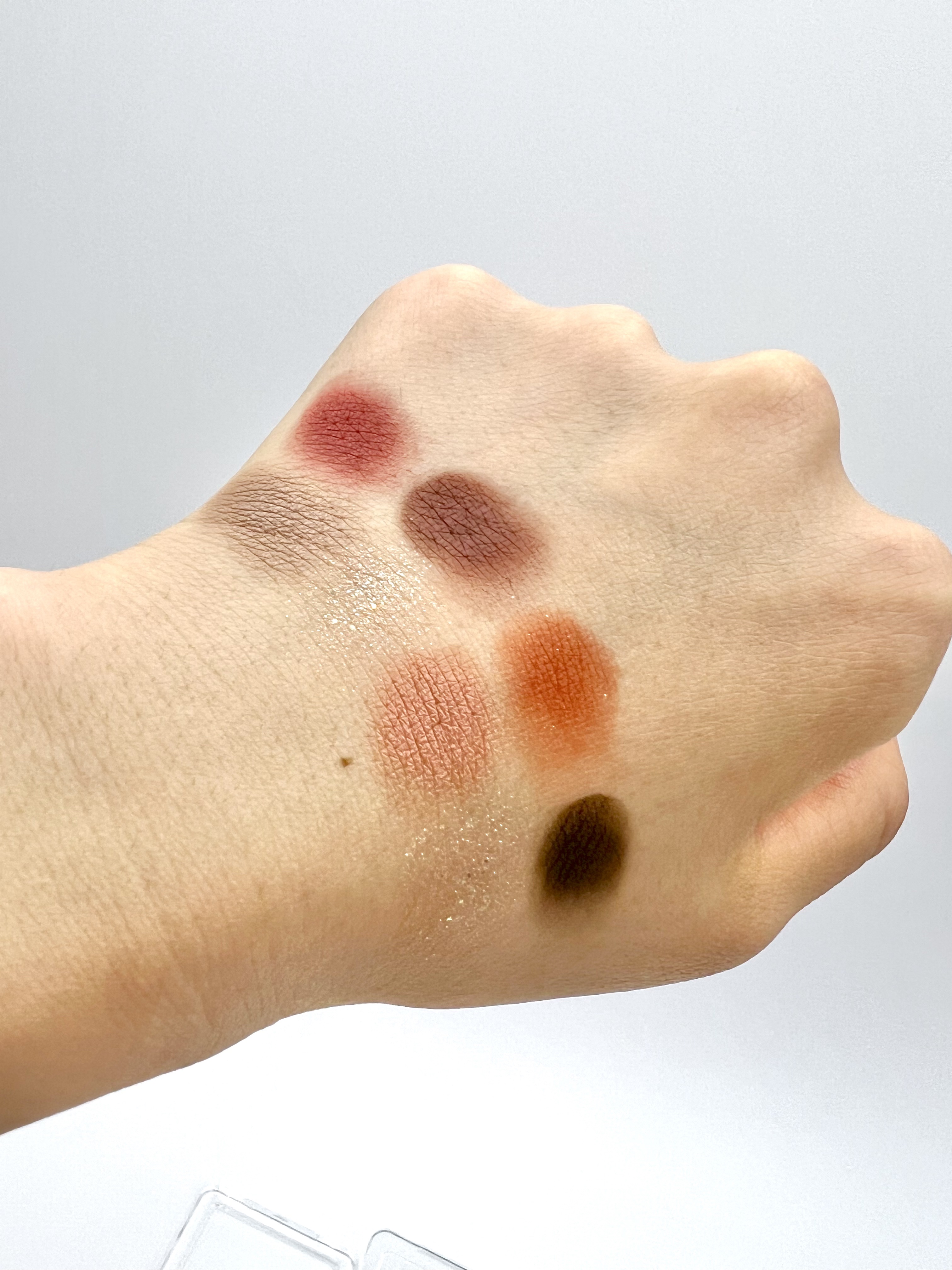 間違いなくお買い得。 何とも言えないこのきれいなグラデーションのカラーを少なくとも4色から5色位使えば、かなり目元にも奥行きが生まれそう。 しかもキラキラ型のラメが入ったアイシャドーが4色も付いているし、その他は結構マットな質感で組み合わせて使ってもかわいい。 ラメのところは大粒のラメタイプと、細かい粒子のラメタイプとそれぞれあるので、涙袋としても使えるし。普通のアイシャドーとしてラメ感を楽しみたい時にもグッド。 rom&ndのパレットシリーズは、他にもラメだらけのタイプや、マットタイプだらけのタイプ等々、いろんな種類があるのでこれは全色揃えたくなるのは何かわかる気がする笑 オフィス使いでも絶対に使える!!!お出かけにももちろん馴染むしラメがあるからパーティーでもイベントでも使えそう。家辺向きとかも書いてあったけど私的にはグリーンベースでもブルーベースでも使い方次第で全然使えると思う。 特に1番薄いベージュのスキンベージュ。ムードブラウン、ディープブラウニーはあっという間に、底見えしそう。笑