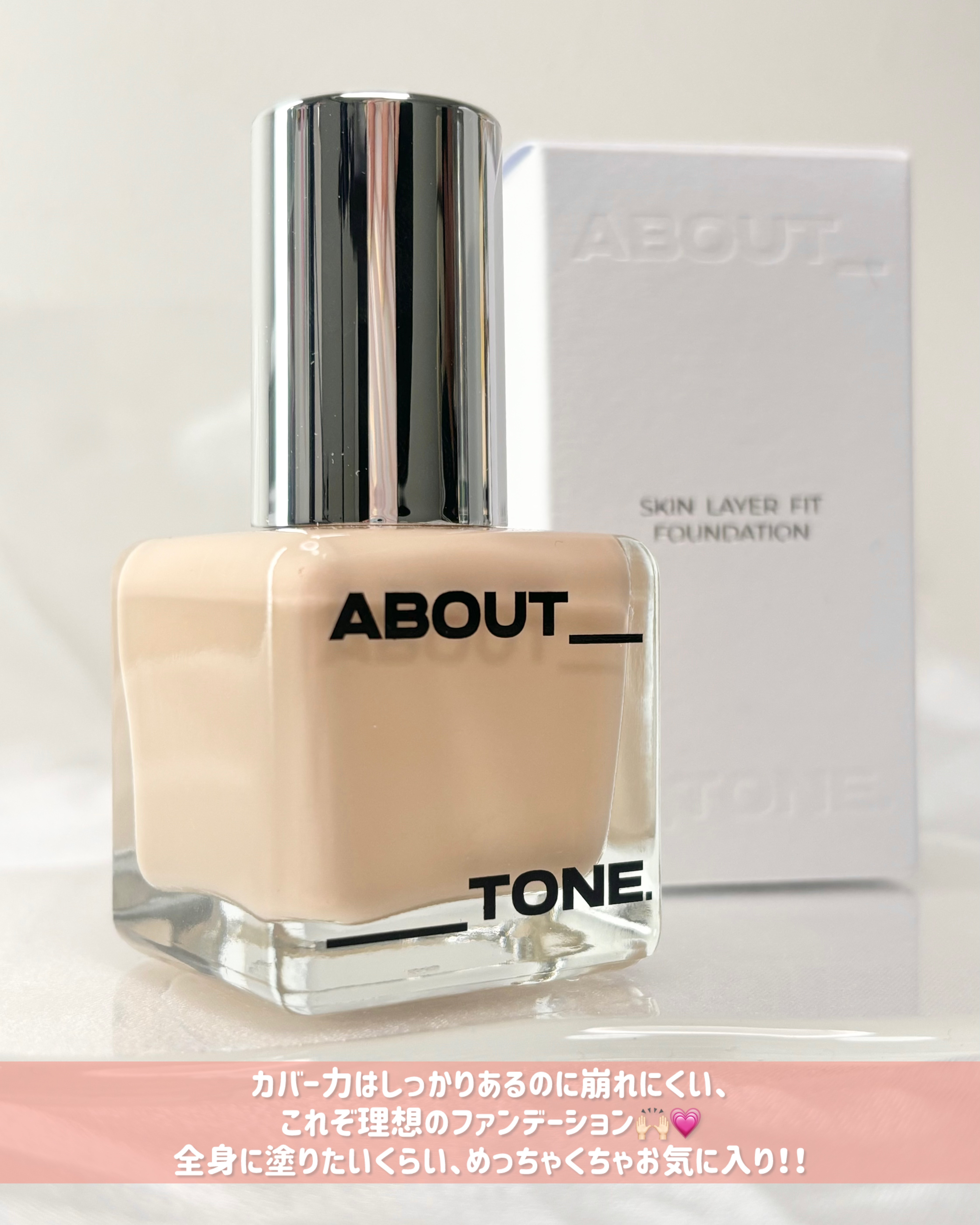 なめらかな塗り心地ながら 伸ばしてみると肌にぴたっと密着してキープ力がすごい!セミマット仕上がりで厚塗りになりにくく、これからの秋冬メイクにもぴったり。 私の肌トーンには21 ブルベライトがぴったりでした💡 ABOUT TONE様より提供いただきました💐