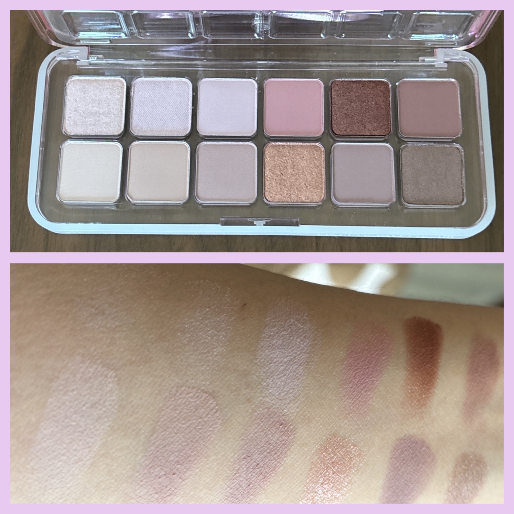 全体的に落ち着いたくすみカラーが特徴でパープル系の色が好きな方におすすめのパレットです♥ 粉質は柔らかいですが粉飛びしづらく、使いやすいパレットになっています。 キラキラとしたラメはとても細かく上品に輝きます✨落ち着いたメイクから華やかなメイクまで幅広く使えるなと思いました。