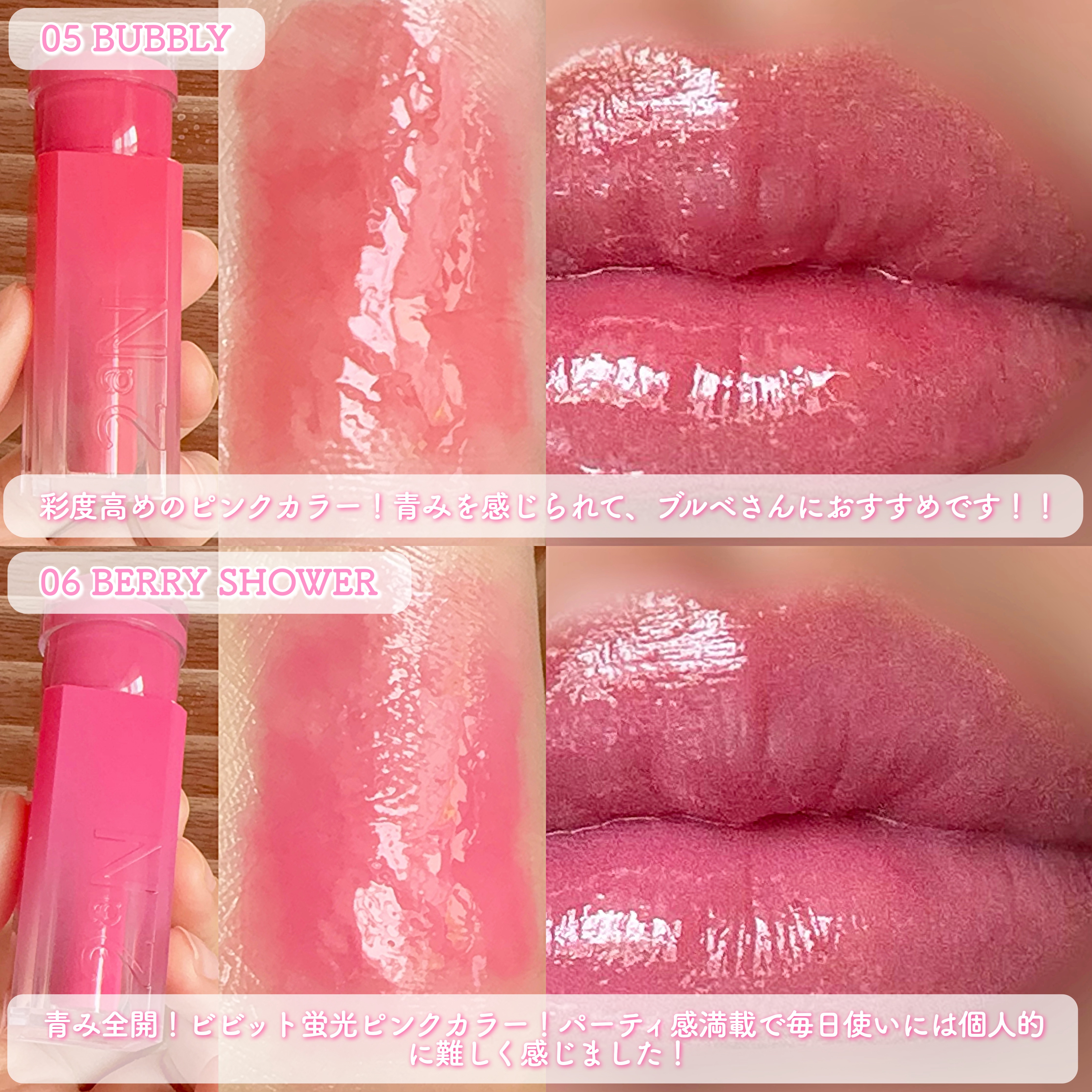 甘く透ける2aNティント10色レビュー✼••┈┈••✼••┈┈••✼••┈┈••✼••┈┈••✼▶︎2aNGlazeBouncingTint若干感じるくらいのマイルドな清涼感、しっとりとしたテクスチャー。ぷるんっとしたキャンディのようなツヤが...