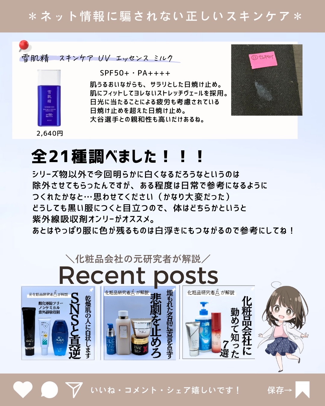 特定の有効成分を試してみたい。美容成分を試したい。そんな時は代用してもいいけど、それって似てるのかな?って思うときが正直ある。 同じ成分があっても実は濃度が違ったり、処方技術が違ったり。技術が違うと使用感も剤型も変わることがあることは知ったうえで使うといいかも。 せっかくプチプラ化粧品を買うならそれはそれで楽しんでほしいから是非念頭にいれてほしいな!!
