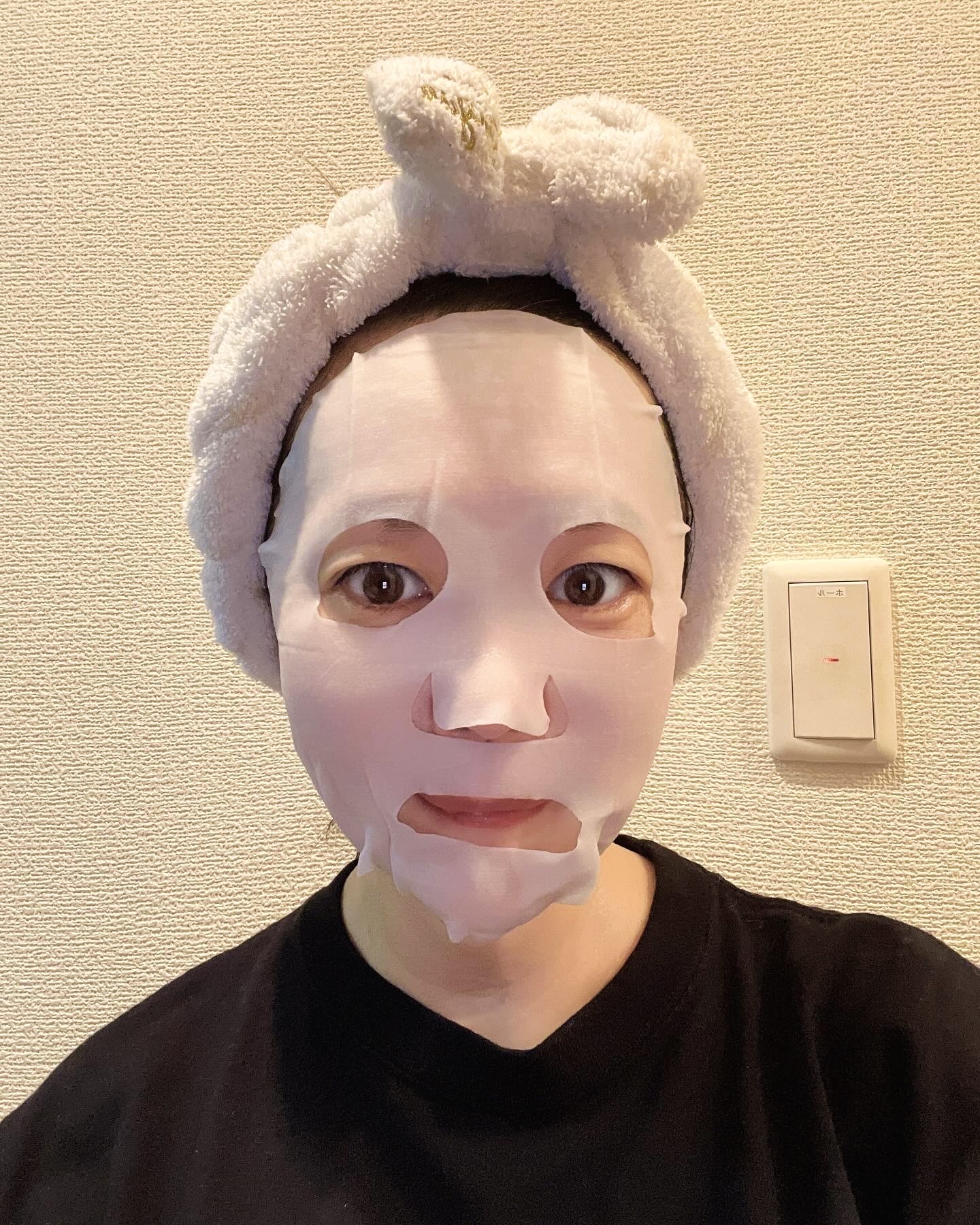 ちょっと黄みがかった薄めマスク!ホワイトニングアンプル、なので美白? 美容液に浸されてる系マスクかなり薄めなので、付けると徐々にずれ落ちてきた(笑) 保湿はそこそこあります👍️ でも剥がしてすぐ上からスキンケアしないと、かなり乾き早いです!