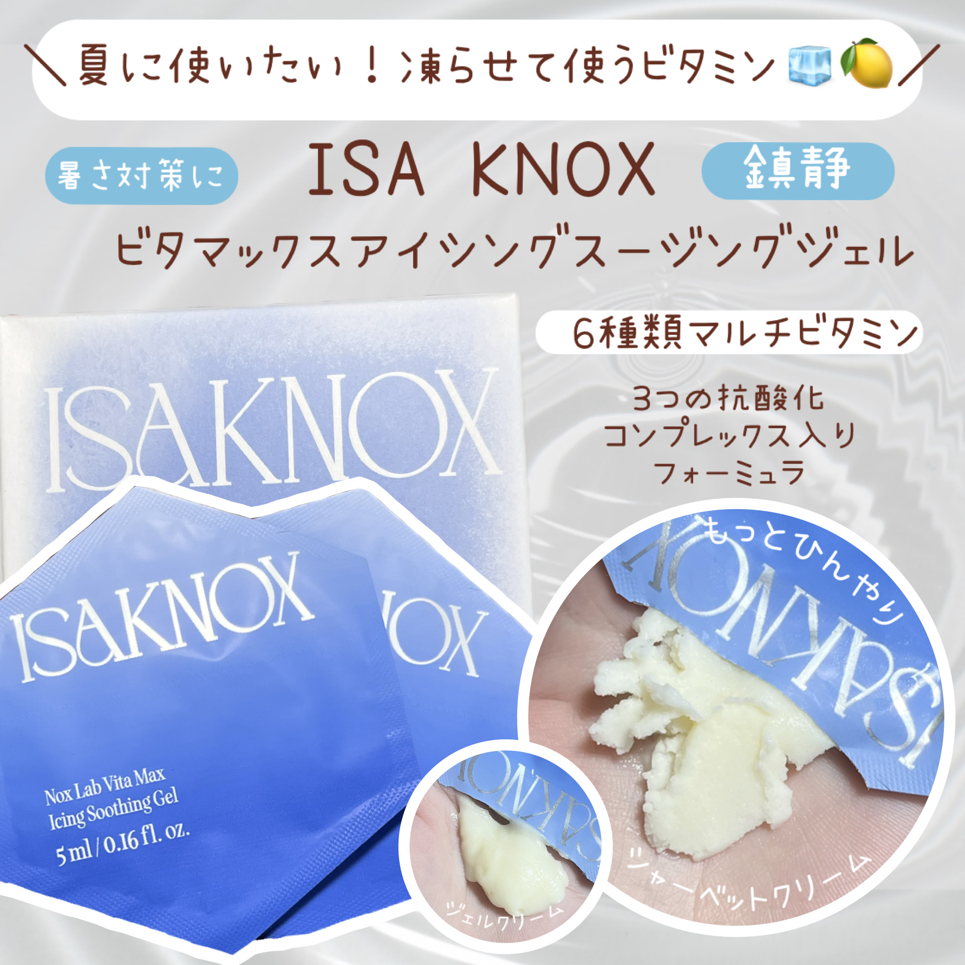 🧊そのままジェル?それともシャーベット?ISAKNOXビタマックスアイシングスージングジェル暑い時期にぴったりなひんやりクリームになります。🧊ポイント①6種類のマルチビタミン+3つの抗酸化コンプレックス(※)②常温だとジェルクリーム、凍らせる...
