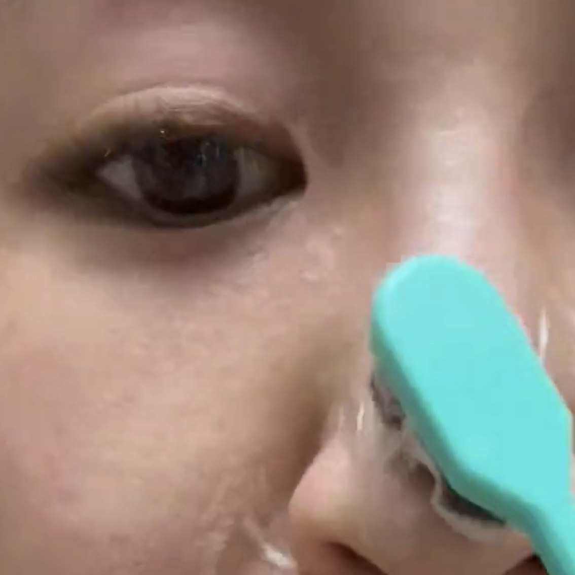 歯ブラシみたいな超細毛ブラシが 毛穴のお掃除してくれる!! Bamboni ポア ジェリー クレンザー ブラシも柔らかくて、肌も傷つけにくい。 毛穴の奥まで優しくクレンジングできるよ! 最後に洗い流したら 毛穴の黒ずみがきれいになった!!
