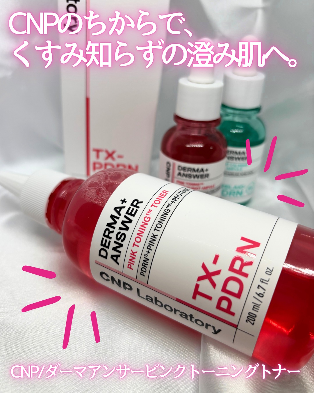 Glintさまを通していただきました。CNPLaboratoryダーマアンサーピンクトーニングトナー200ml人気のダーマアンサーPDRNラインからトナーが登場!肌への吸収率を高めたPDRNとCNPならではの美白レシピ+エステで使われる角質ケ...