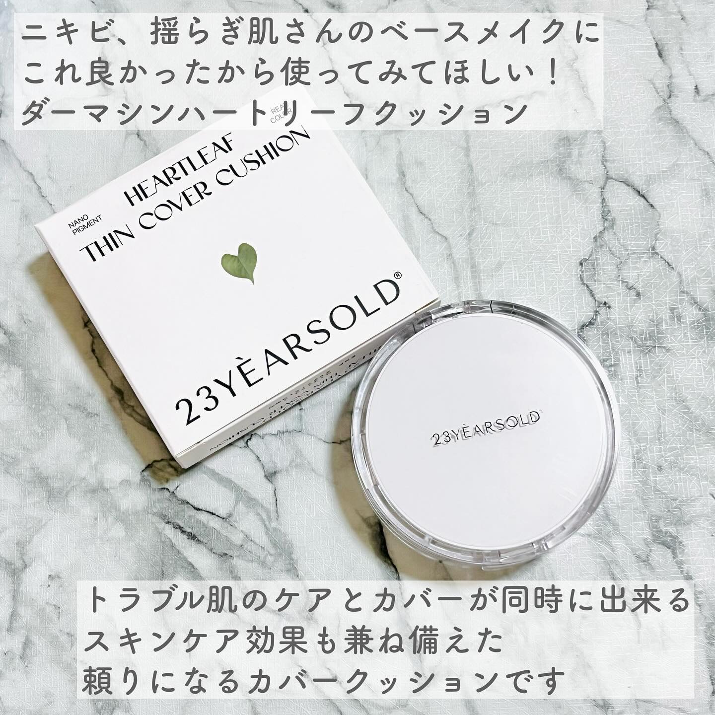 #PR23yearsold様よりダーマシンハートリーフクッションを提供いただきました🌿コンシーラーが大人気なブランド様、クッションファンデはどうなんだろう...?と興味津々でした😎ドクダミエキスが入っていて、肌をケアしながらもしっかりカバーし...