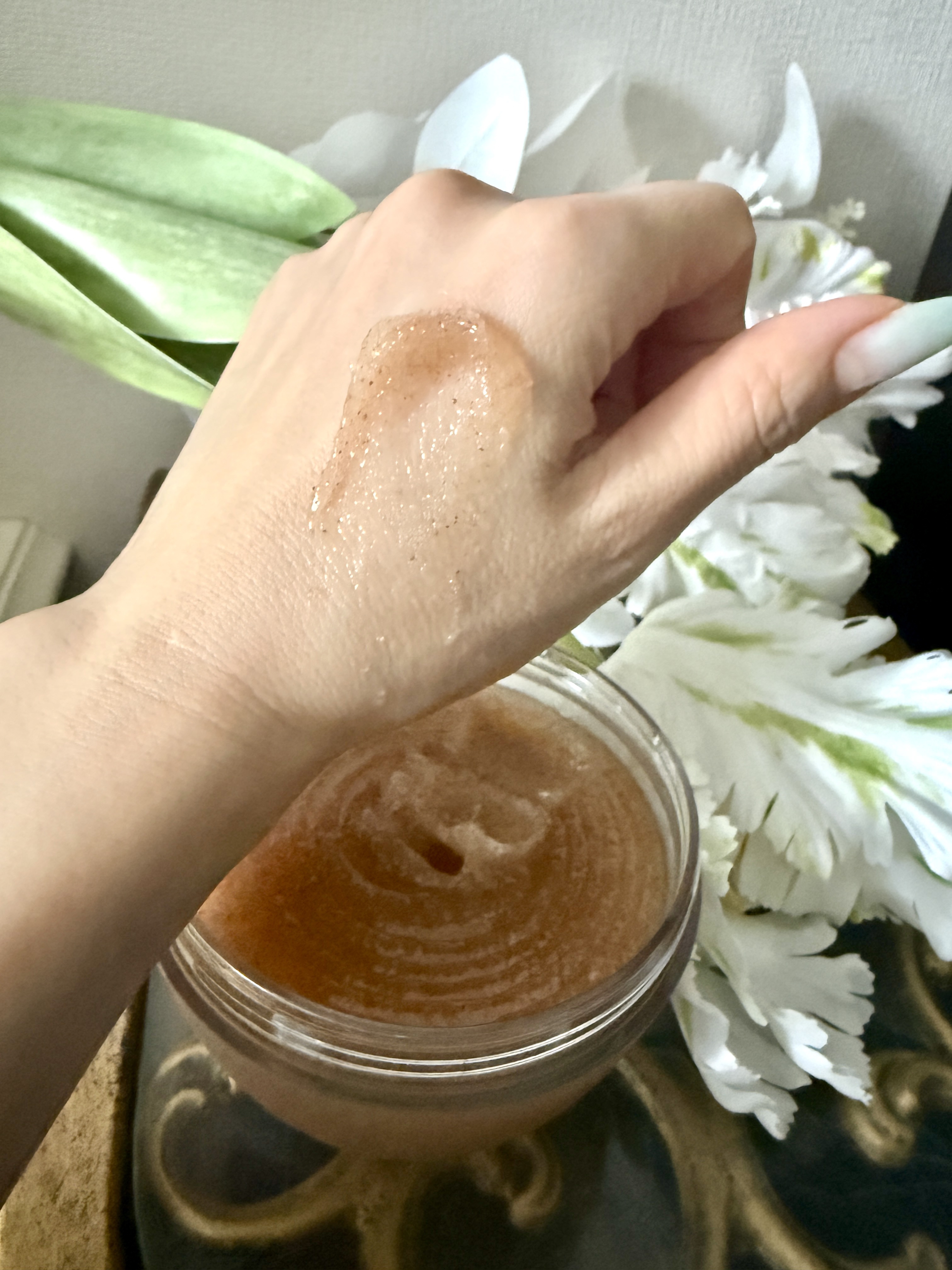 AHRES(アーレス) BodyScrubBrusherMoist(ボディスクラブブラッシャーモイスト)を使ってみました♡\黒糖スクラブで磨く、もっちりボディ✨/沖縄産黒糖※1を配合した、シュガー※2のボディ用スクラブです♥アンズの種子※3を...