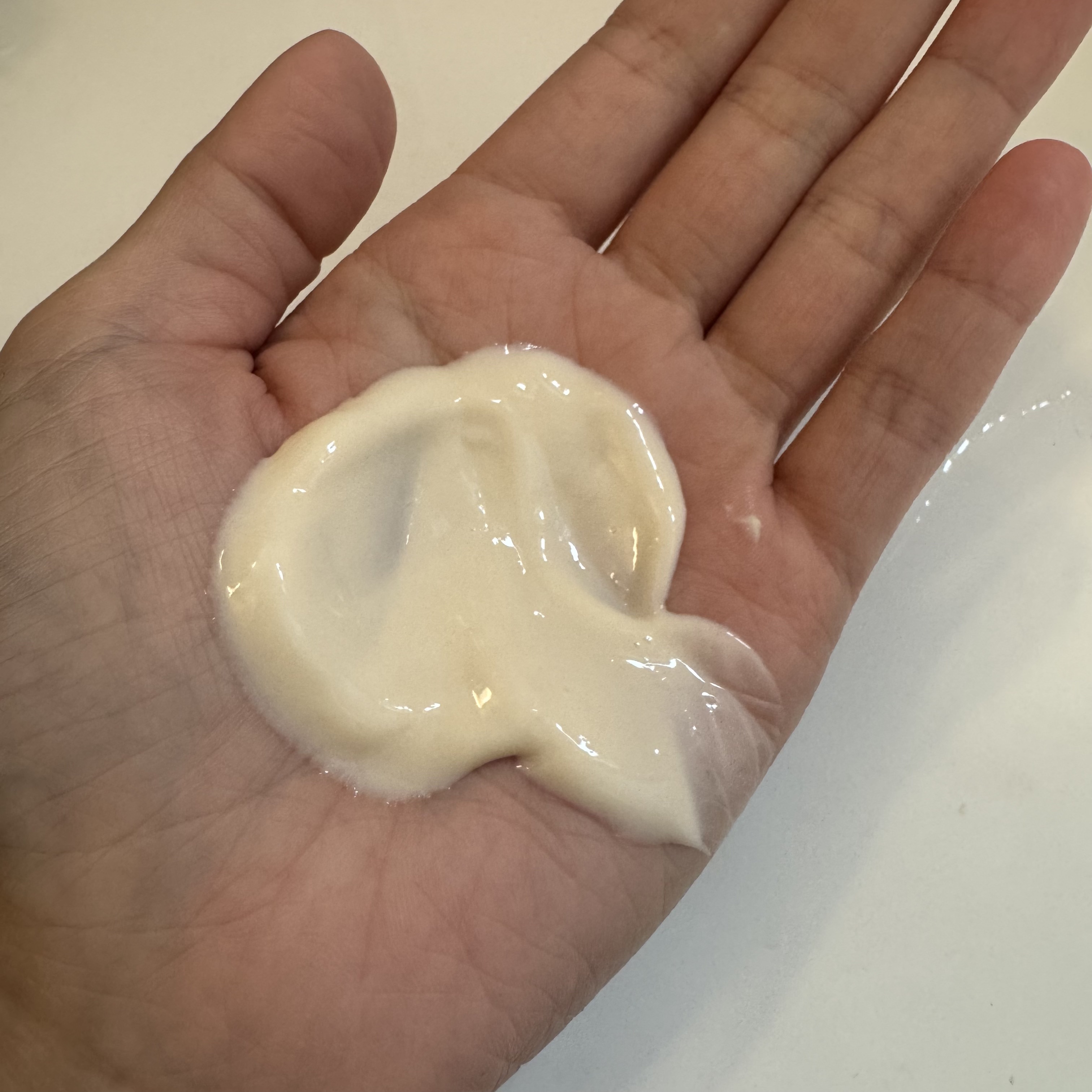 泡立たない濃厚なクリームが滑らかに伸び広がって頭皮に密着。 2-3分パックで置く。 シャンプー×トリートメント効果があるから トリートメントせずに洗い流したけど絡まりなし! 毛穴が洗浄されたことによって 日頃頭ズーーーンって重い感じやったんが軽くなった!