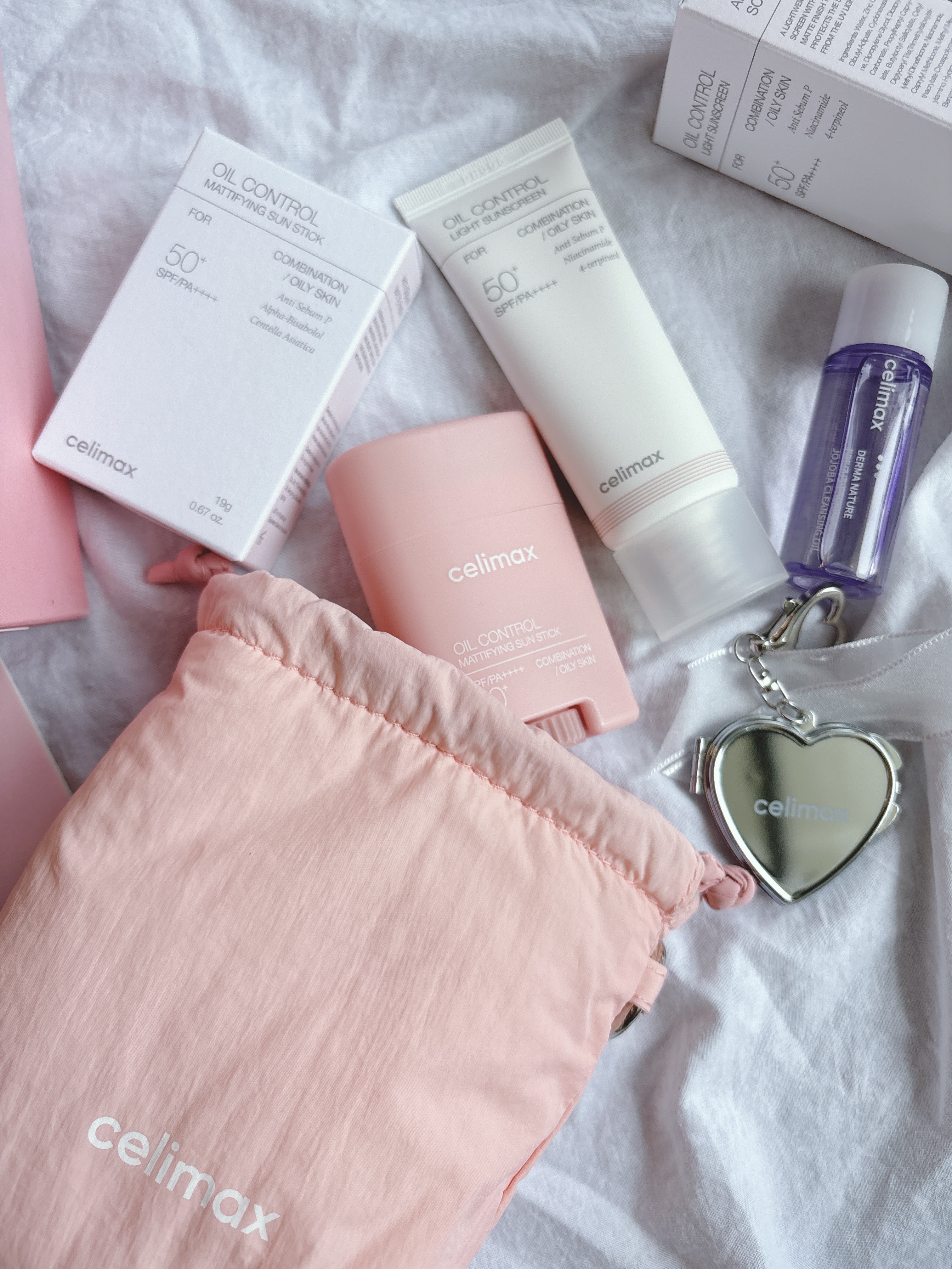 celimax「オイルコントロールキット」セリマックスからかわいいギフトが届きました〜❣️中身は、☑︎オイルコントロール日焼け止めスティック☑︎オイルコントロール日焼け止め☑︎フレッシュクレンジングオイル(ミニサイズ)☑︎ハートミラーキー...