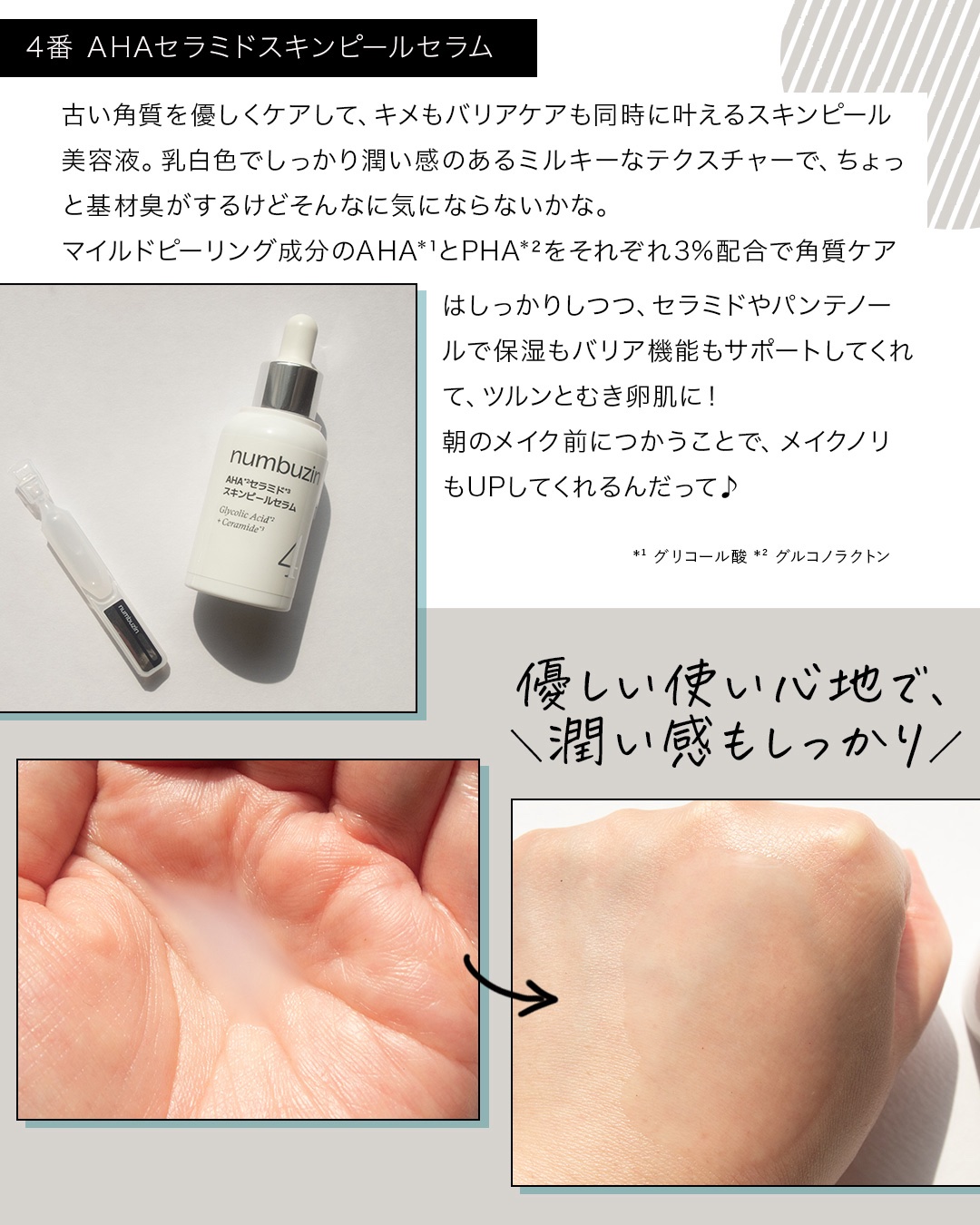 とても分かりやすくまとめてくださっていてありがたいです🙏🙏 普段ノーメイクなんですが、角質ケアとして4番が気になっています🥺 公式も他の方も朝のメイク前に!と書いていて、あまり向いていないのかなと悩んでます😣