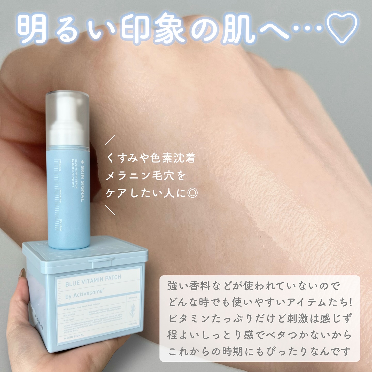 SKINSIGNAL(@skinsignal_jp)ブルービタミンバブルセラムブルービタミンパッチ・ブルービタミンバブルセラムポンプ式の泡で出てくるタイプのセラム!液垂れしづらく、さっぱりとした使い心地に感じました✨シュワっと感が気持ちよく、...