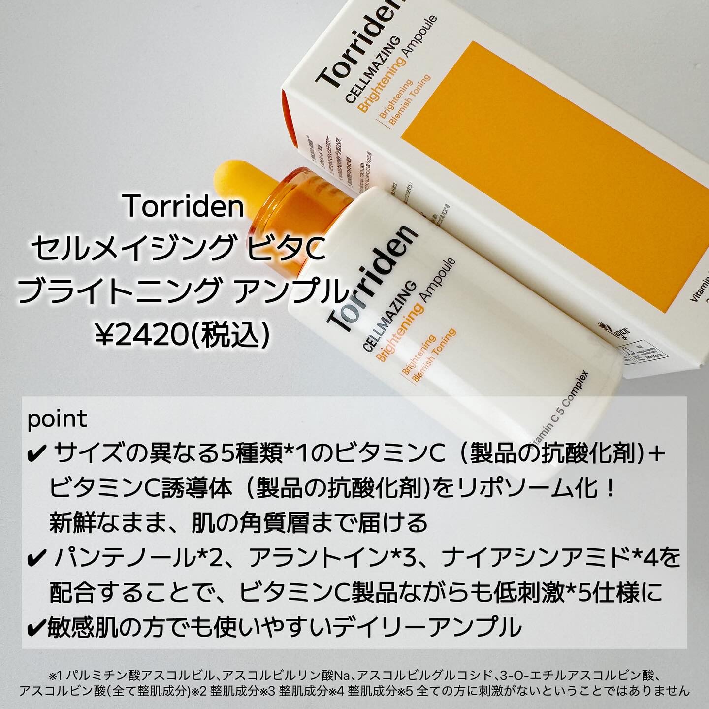 ╲Torriden╱🤍バランスフルシカセラム初の鎮静セラムみたいとろっとしたテクスチャー🤍セルメイジングビタCブライトニングアンプルビタミンC*1はこれ!ビタミンC*1、ナイアシンアミドを配合!更に、分子の異なる5つの...