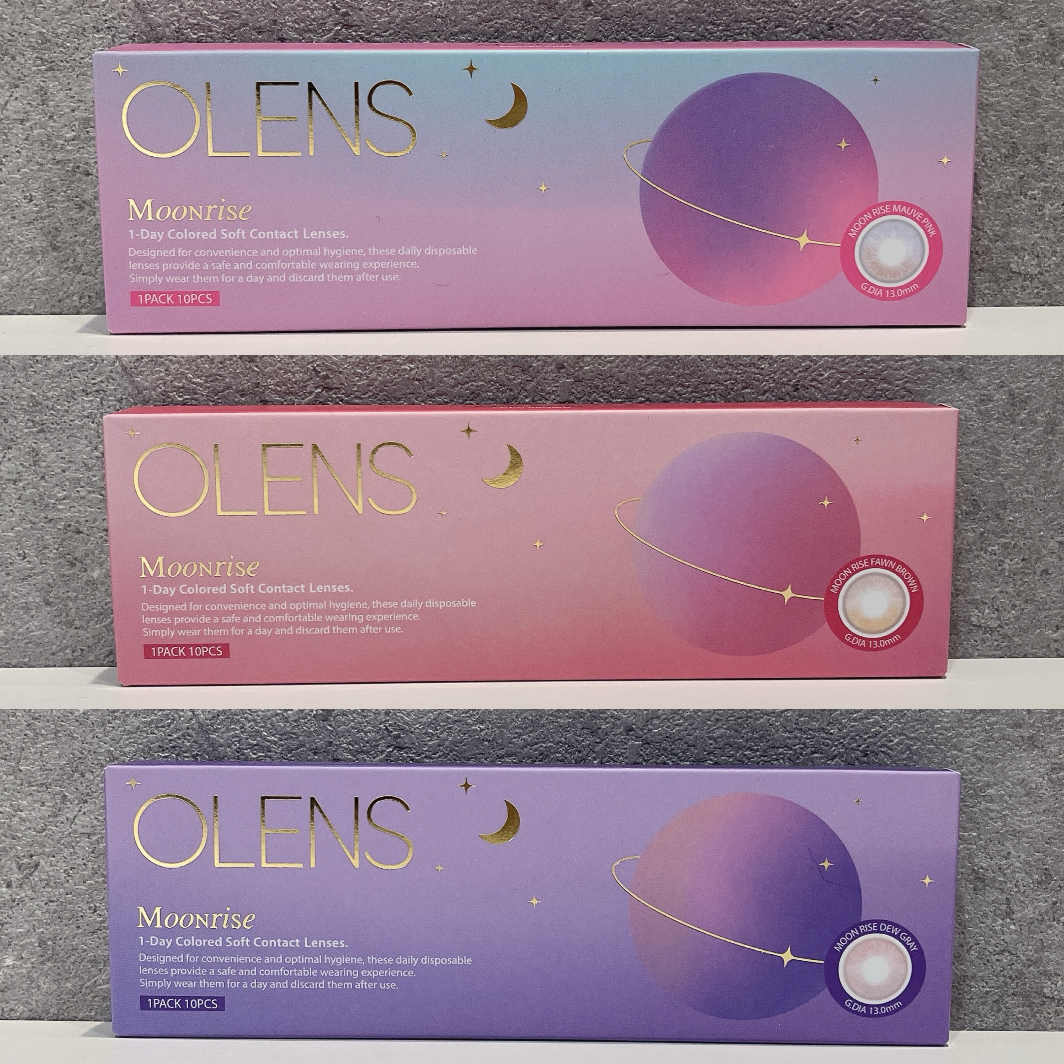 OLENS水光カラコン新色登場!🔸ムーンライズモーブピンク🔸ムーンライズデューグレー🔸ムーンライズファウンブラウン1DAY(1箱10枚入り)DIA14.2mm着色直径13.0mm含水率38%グラデーションハイライターでまるで月が映ったような目...