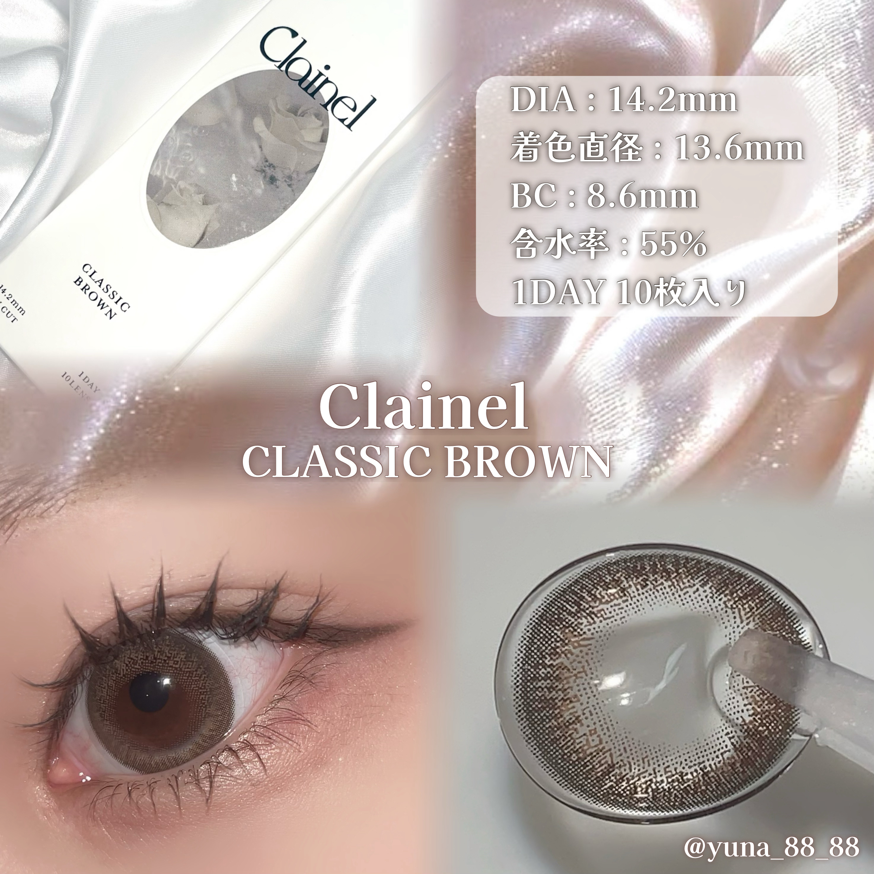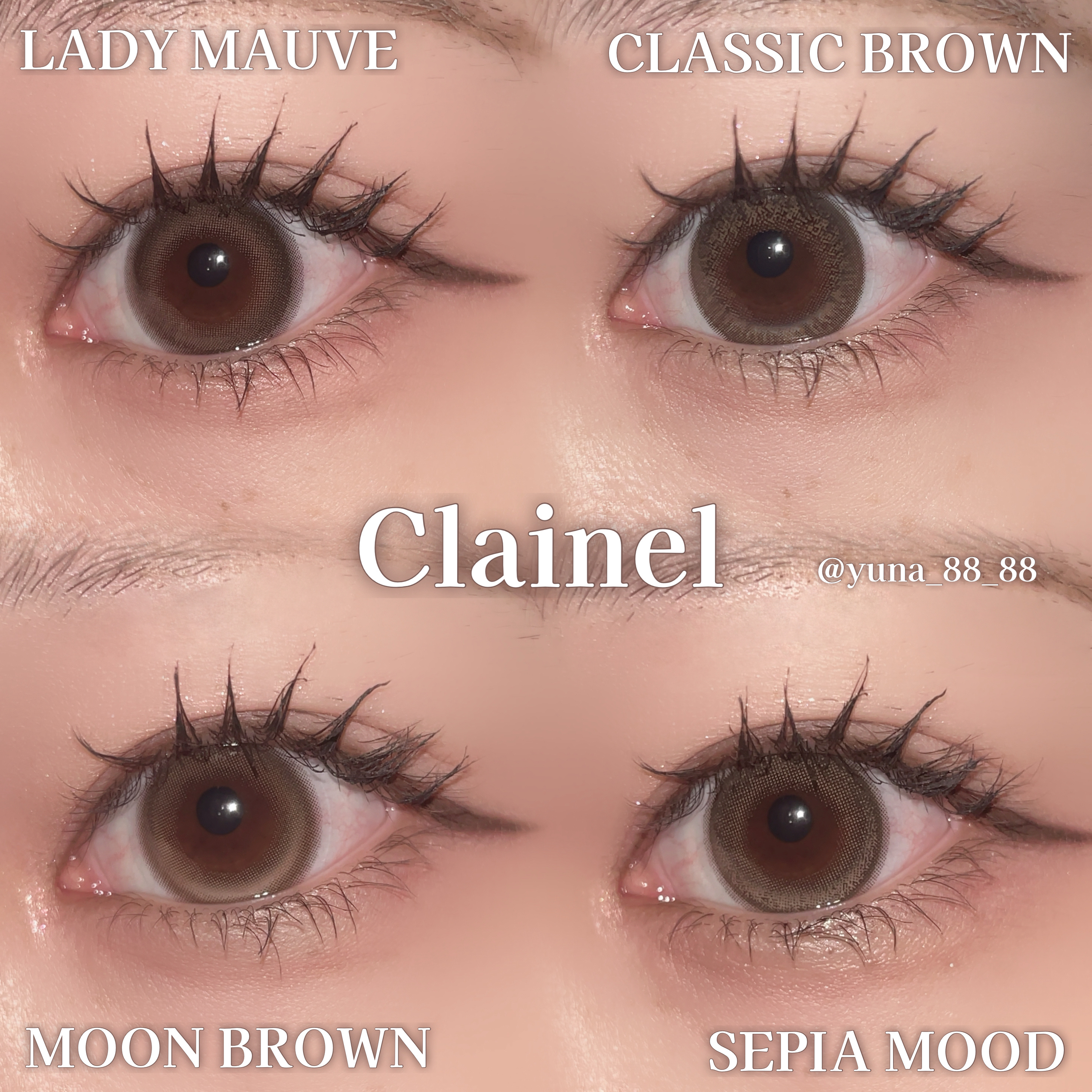 こじはるカラコン「Clainel」使いやすくもありながら洗練された印象が叶う4色!Clainel1DAYセピアムードムーンブラウンクラシックブラウンレディモーヴDIA14.2mm/8.6mm/含水率55%1PACK10PCS¥1600税抜NE...