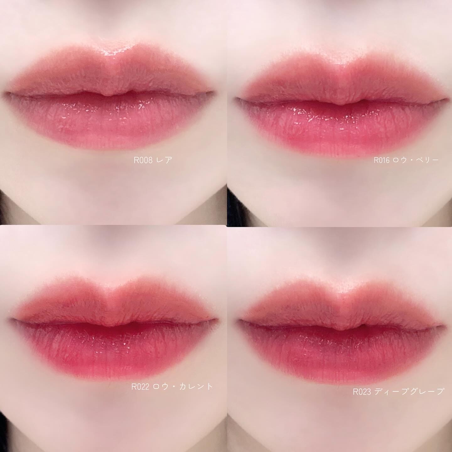 - <R001 ベア> 水、ジフェニルジメチコン、オクチルドデカノール、ビスジグリセリルポリアシルアジペート-2、リンゴ酸ジイソステアリル、トリメチルシロキシフェニルジメチコン、水添ポリイソブテン、ジグリセリン、ポリソルベート60、BG、セチルPEG/PPG-10/1ジメチコン、1,2-ヘキサンジオール、ペンチレングリコール、(アクリル酸ヒドロキシエチル/アクリロイルジメチルタウリンNa)コポリマー、セテアレス-20、スクワラン、フェノキシエタノール、酸化チタン、香料、エチルヘキシルグリセリン、黄5、赤227、イソステアリン酸ソルビタン、水酸化Al、ポリアクリル酸アンモニウム、酢酸トコフェロール、黄4、青1、ヒアルロン酸Na、(アルギニン/リシン)ポリペプチド、加水分解ヒアルロン酸、トコフェロール、アセチルヒアルロン酸Na、ソルビン酸 <R002 ロウローズ> 水、ジフェニルジメチコン、オクチルドデカノール、ビスジグリセリルポリアシルアジペート-2、リンゴ酸ジイソステアリル、トリメチルシロキシフェニルジメチコン、水添ポリイソブテン、ジグリセリン、ポリソルベート60、BG、セチルPEG/PPG-10/1ジメチコン、1,2-ヘキサンジオール、ペンチレングリコール、(アクリル酸ヒドロキシエチル/アクリロイルジメチルタウリンNa)コポリマー、セテアレス-20、スクワラン、フェノキシエタノール、酸化チタン、香料、エチルヘキシルグリセリン、黄5、赤227、イソステアリン酸ソルビタン、酢酸トコフェロール、水酸化Al、ポリアクリル酸アンモニウム、ヒアルロン酸Na、青1、加水分解ヒアルロン酸、(アルギニン/リシン)ポリペプチド、トコフェロール、アセチルヒアルロン酸Na、ソルビン酸 <R003 ロウプリコット> 水、ジフェニルジメチコン、オクチルドデカノール、ビスジグリセリルポリアシルアジペート-2、リンゴ酸ジイソステアリル、トリメチルシロキシフェニルジメチコン、水添ポリイソブテン、ジグリセリン、ポリソルベート60、BG、セチルPEG/PPG-10/1ジメチコン、1,2-ヘキサンジオール、ペンチレングリコール、(アクリル酸ヒドロキシエチル/アクリロイルジメチルタウリンNa)コポリマー、セテアレス-20、スクワラン、フェノキシエタノール、香料、エチルヘキシルグリセリン、酸化チタン、黄5、イソステアリン酸ソルビタン、赤227、酢酸トコフェロール、ヒアルロン酸Na、水酸化Al、ポリアクリル酸アンモニウム、加水分解ヒアルロン酸、青1、(アルギニン/リシン)ポリペプチド、トコフェロール、アセチルヒアルロン酸Na、ソルビン酸 <R004 フィーバー> 水、ジフェニルジメチコン、オクチルドデカノール、リンゴ酸ジイソステアリル、ビスジグリセリルポリアシルアジペート-2、トリメチルシロキシフェニルジメチコン、水添ポリイソブテン、ジグリセリン、ポリソルベート60、BG、セチルPEG/PPG-10/1ジメチコン、1,2-ヘキサンジオール、ペンチレングリコール、(アクリル酸ヒドロキシエチル/アクリロイルジメチルタウリンNa)コポリマー、セテアレス-20、スクワラン、フェノキシエタノール、香料、エチルヘキシルグリセリン、黄5、赤227、イソステアリン酸ソルビタン、酢酸トコフェロール、ヒアルロン酸Na、加水分解ヒアルロン酸、(アルギニン/リシン)ポリペプチド、トコフェロール、アセチルヒアルロン酸Na、ソルビン酸 <R005 ハイビスカス> 水、ジフェニルジメチコン、オクチルドデカノール、ビスジグリセリルポリアシルアジペート-2、リンゴ酸ジイソステアリル、トリメチルシロキシフェニルジメチコン、水添ポリイソブテン、ジグリセリン、ポリソルベート60、BG、セチルPEG/PPG-10/1ジメチコン、1,2-ヘキサンジオール、ペンチレングリコール、アクリル酸ヒドロキシエチル/アクリロイルジメチルタウリンNa)コポリマー、セテアレス-20、スクワラン、フェノキシエタノール、香料、エチルヘキシルグリセリン、赤227、黄5、イソステアリン酸ソルビタン、赤104(1)、酢酸トコフェロール、ヒアルロン酸Na、加水分解ヒアルロン酸、(アルギニン/リシン)ポリペプチド、トコフェロール、アセチルヒアルロン酸Na、ソルビン酸 <R006 ロウグレープ> 水、ジフェニルジメチコン、ビスジグリセリルポリアシルアジペート-2、リンゴ酸ジイソステアリル、オクチルドデカノール、トリメチルシロキシフェニルジメチコン、水添ポリイソブテン、ジグリセリン、ポリソルベート60、BG、セチルPEG/PPG-10/1ジメチコン、1,2-ヘキサンジオール、ペンチレングリコール、(アクリル酸ヒドロキシエチル/アクリロイルジメチルタウリンNa)コポリマー、セテアレス-20、スクワラン、酸化チタン、フェノキシエタノール、香料、エチルヘキシルグリセリン、黄5、赤227、イソステアリン酸ソルビタン、水酸化Al、ポリアクリル酸アンモニウム、酢酸トコフェロール、ヒアルロン酸Na、青1、加水分解ヒアルロン酸、(アルギニン/リシン)ポリペプチド、トコフェロール、アセチルヒアルロン酸Na、ソルビン酸 <R007 チル> 水、ジフェニルジメチコン、オクチルドデカノール、ビスジ