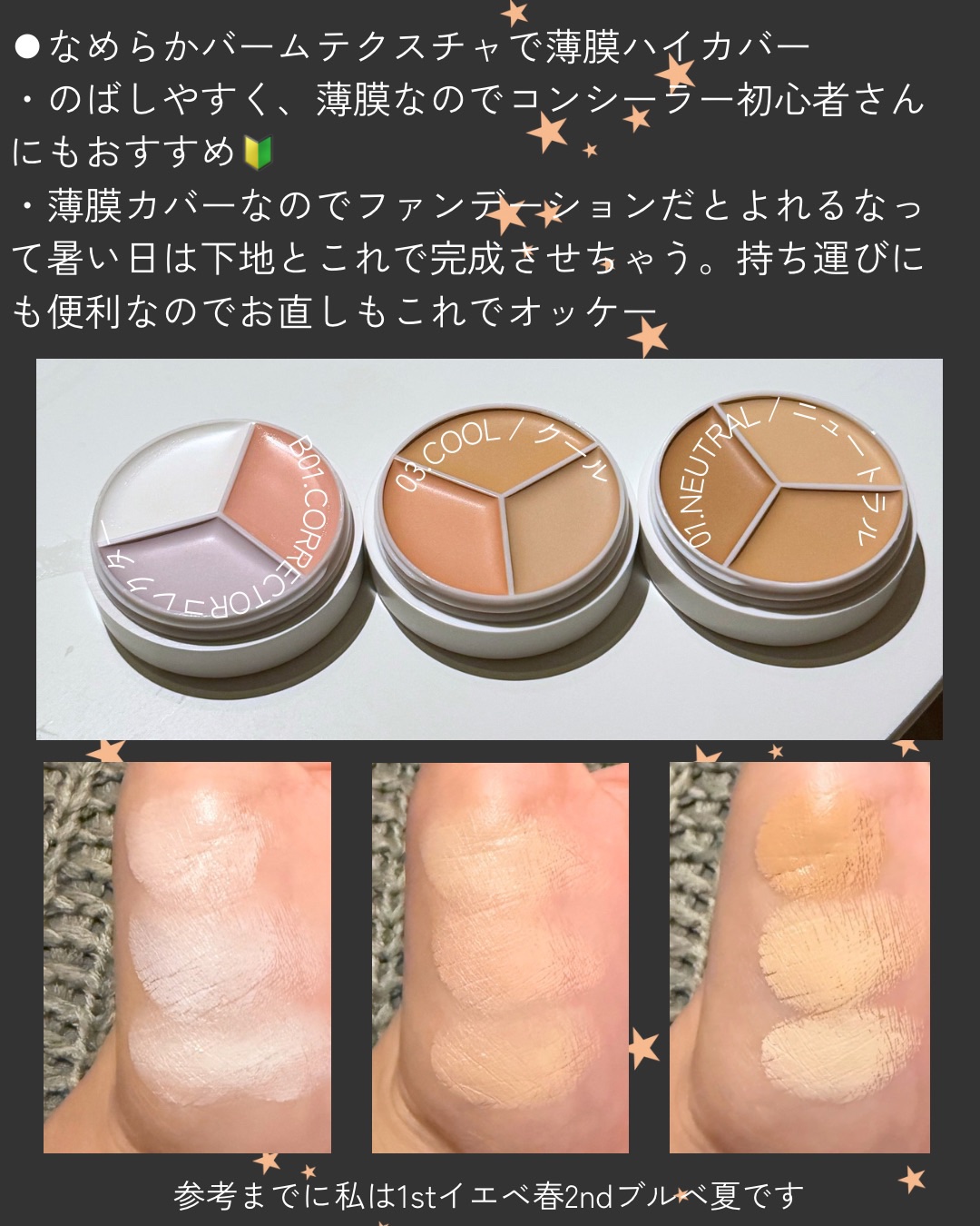 | コンシーラーランキング第24位 | バームタイプなのでスルッと溶けて指や筆にしっかりついて塗りやすい☺️しっとりだけど重くならないのが好きなポイント | 詳細を見る | |