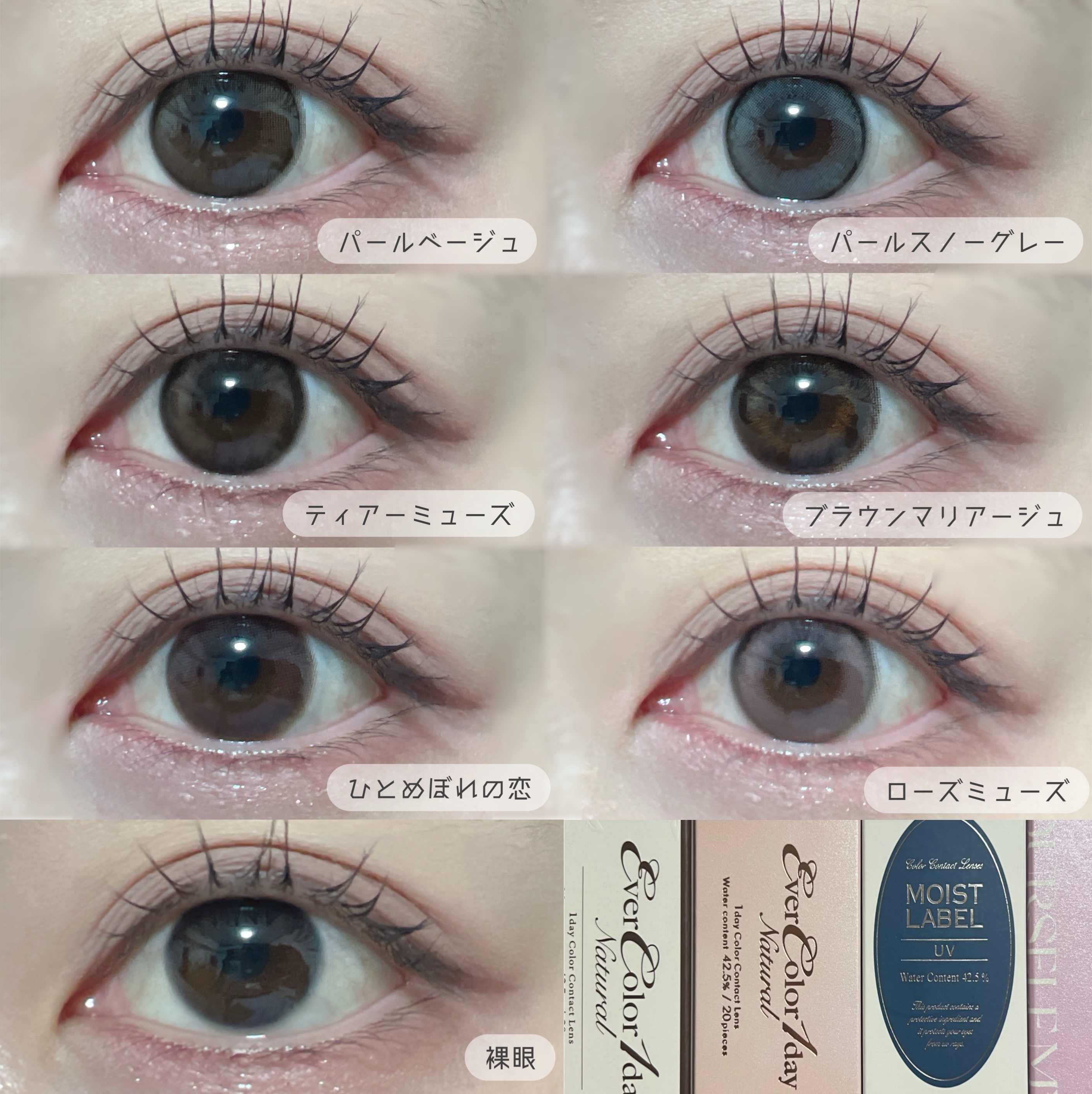 毎日盛れる私に🙈💓エバーカラーワンデーナチュラルパールベージュ、パールスノーグレー、ひとめぼれの恋20枚入り ¥2,598エバーカラーワンデーナチュラルモイストレーベルUVティアーミューズ、ローズミューズ、ブラウンマリアージュ20枚入り ¥2...