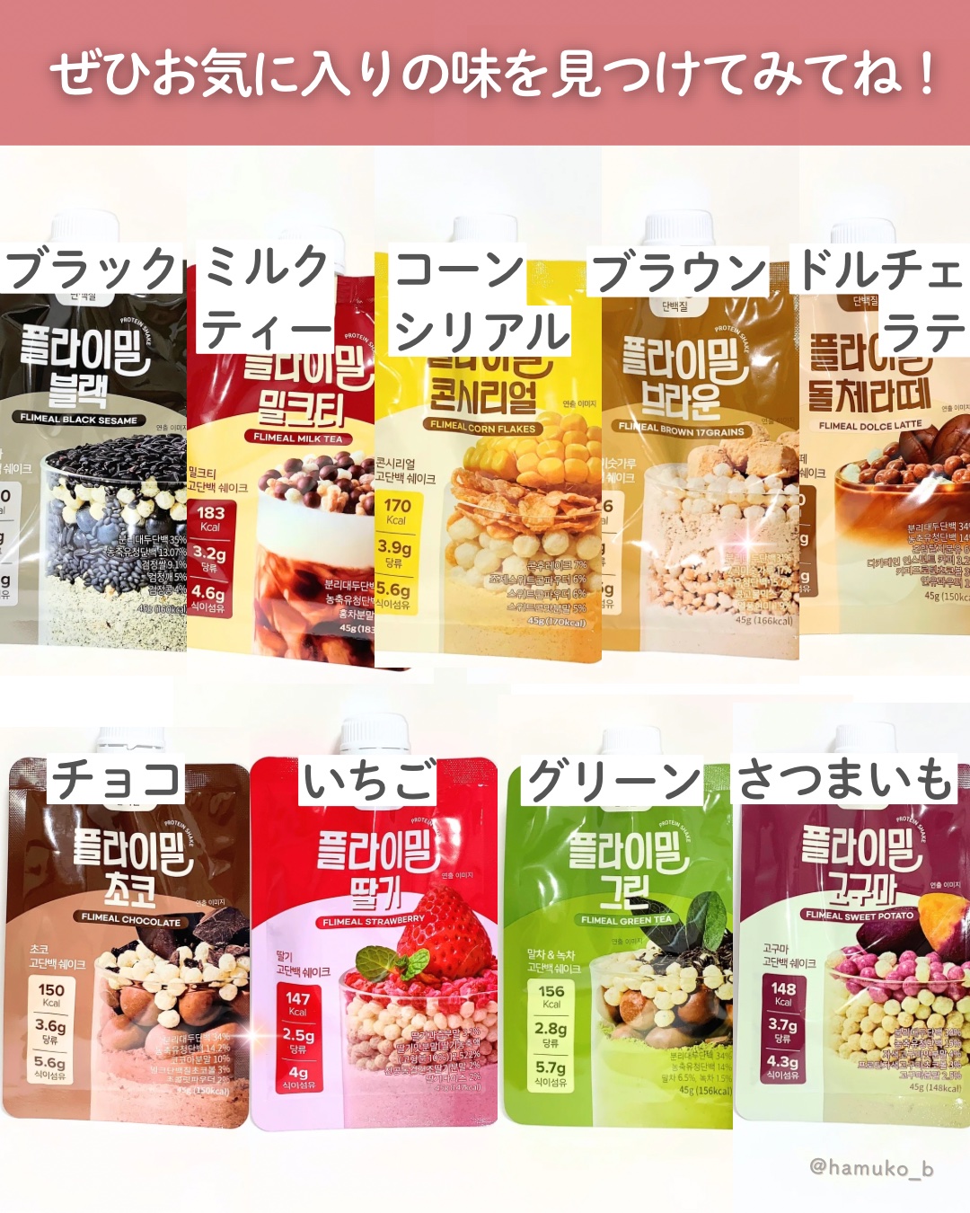 フライミールプロテインシェイクスパウトポーチパウチタイプのプロテイン!プロテインボールも入っておりサクサクしてて美味しいです♪パウチタイプなので持ち歩き可能味は9種類あり いちご、チョコ、ドルチェラテ、ミルクティー抹茶、黒ゴマ、ブラウン、さつ...